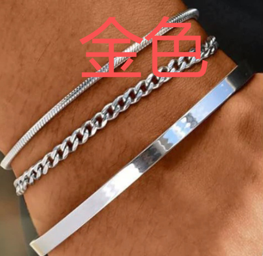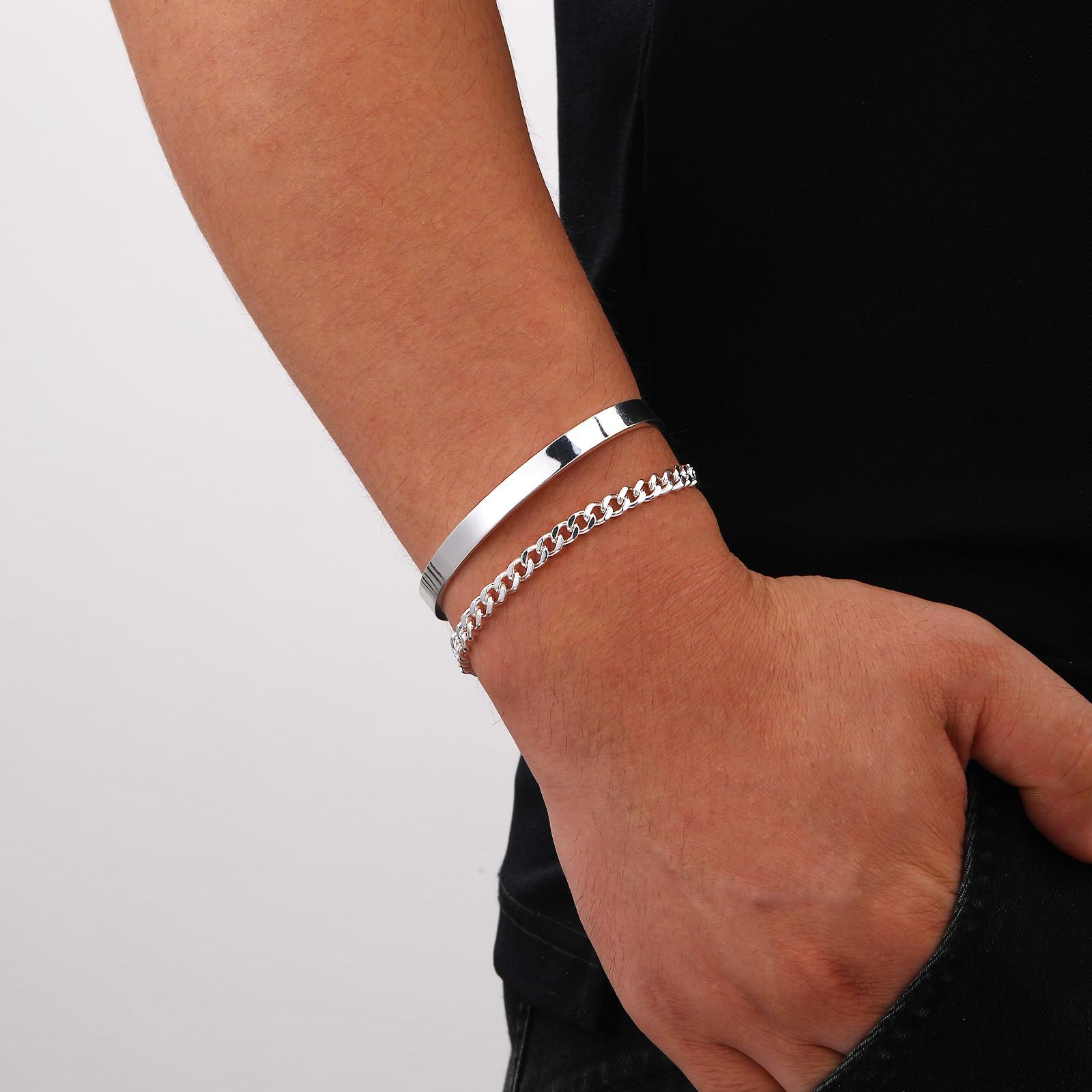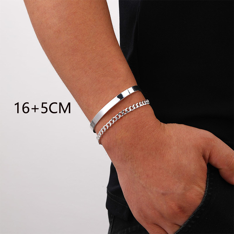 Foreign trade Amazon new stainless steel polished open bracelet Cuban chain twist chain snake chain two-piece jewelry men