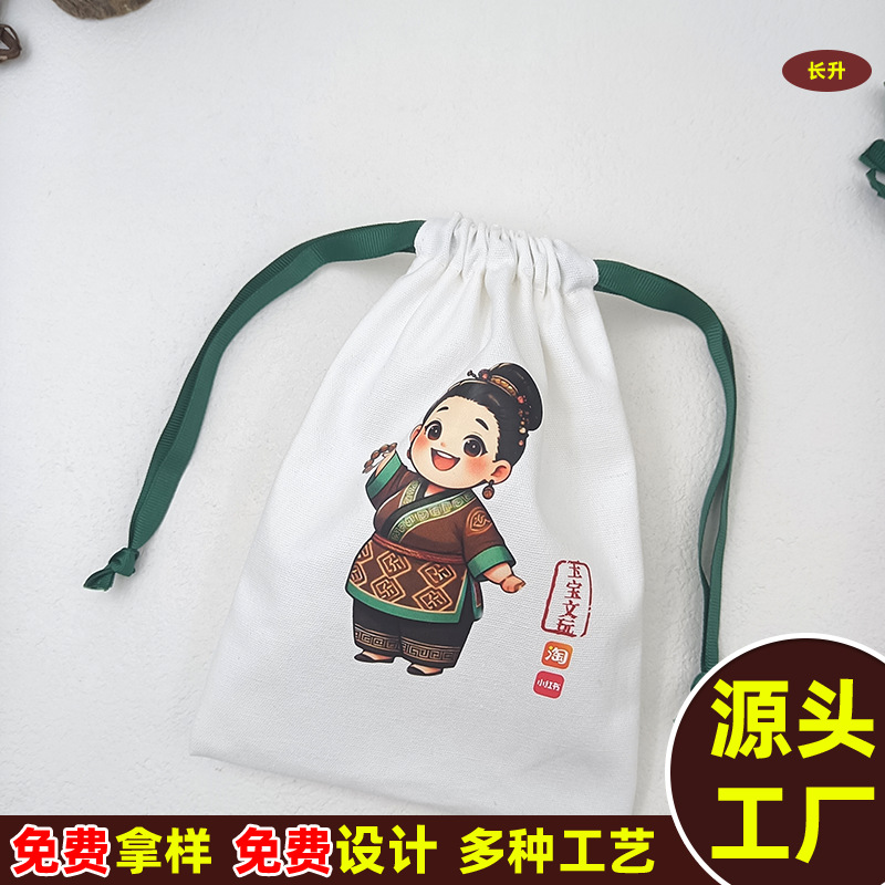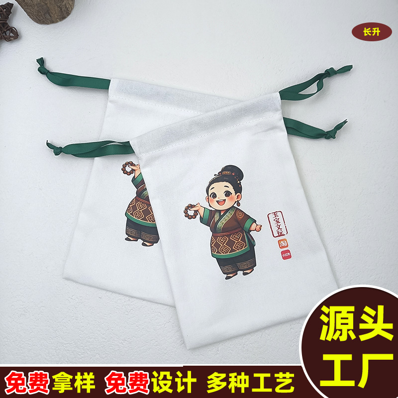 Cotton Canvas Drawstring Bag, Colorful Offset Logo, Beaded Jewelry, Gift Packaging, Storage Bag