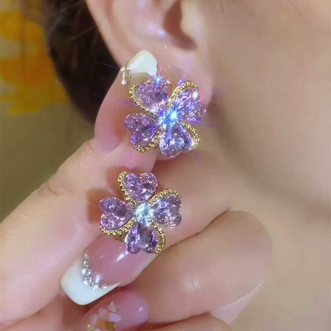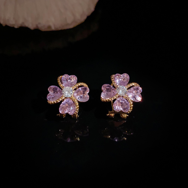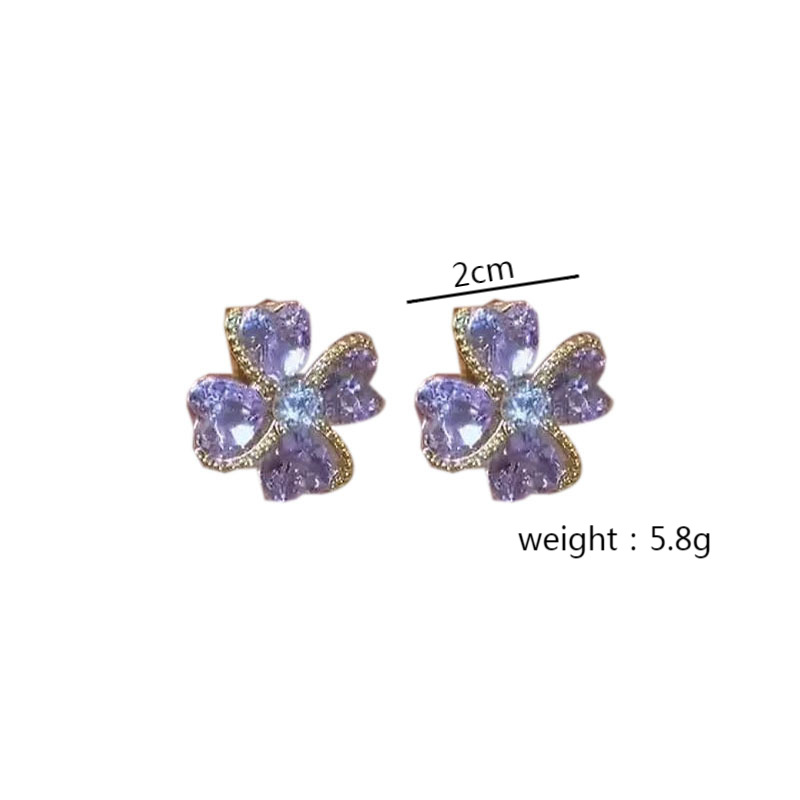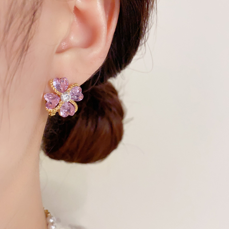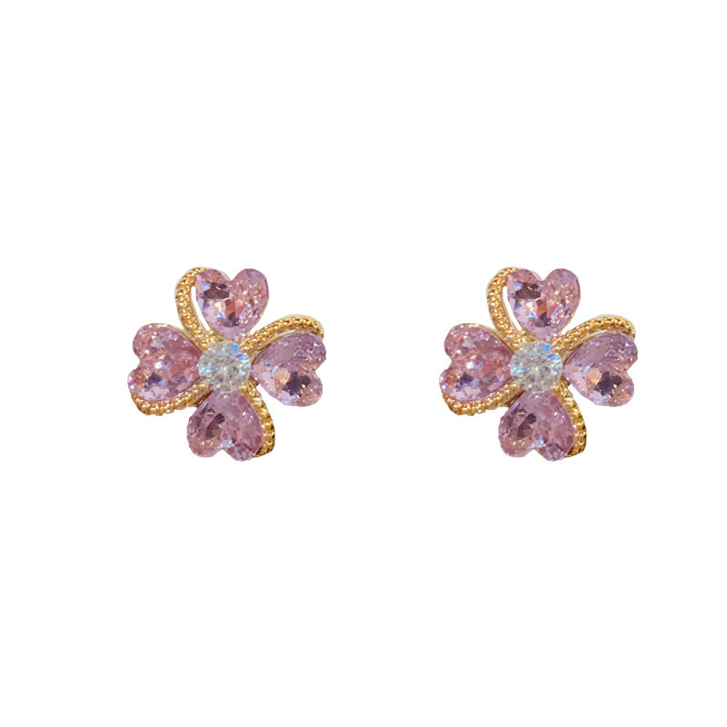 Exquisite and Simple Diamond-encrusted Four-leaf Flower Petal Ear Buckle Sweet Korean-style Earrings