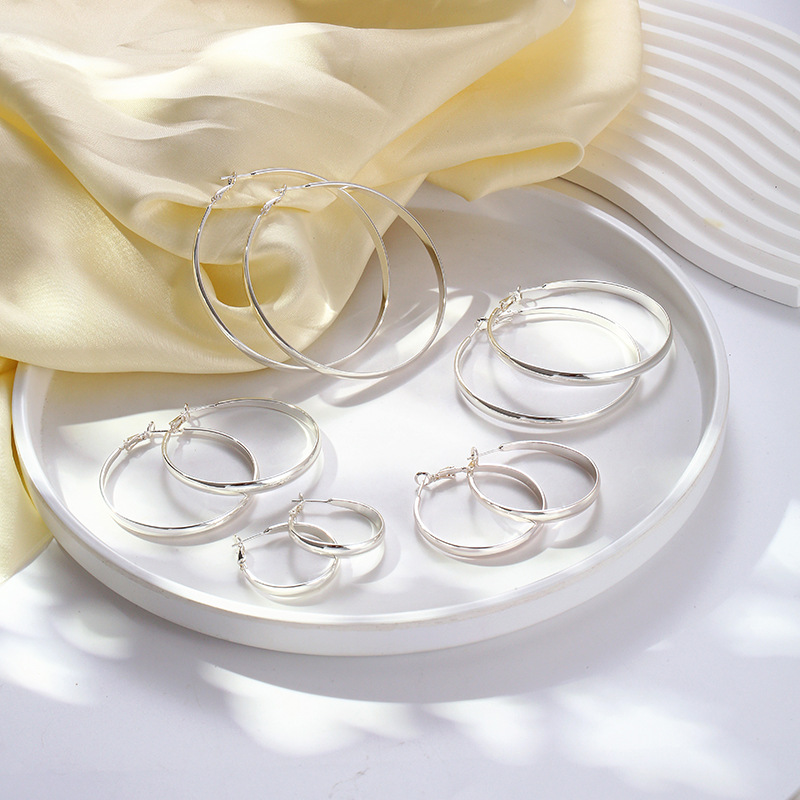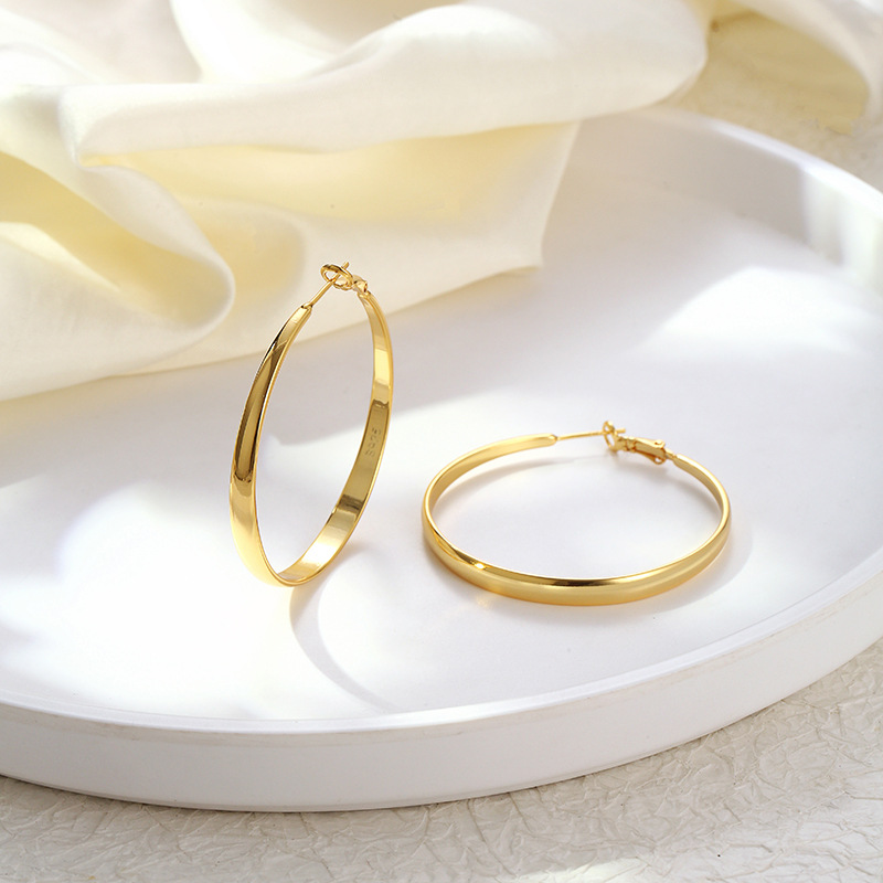 2025 New Style Inner Flat Outer Curved Gradient Hoop Earrings European and American Exaggerated Large Hoop Earrings Exclusively for Cross-Border Amazon
