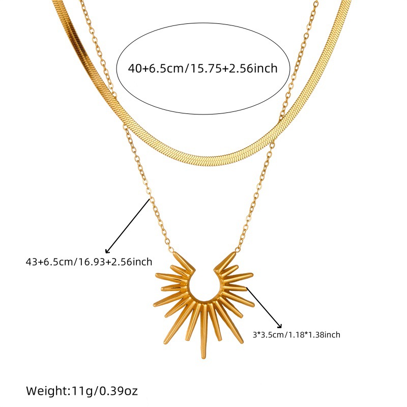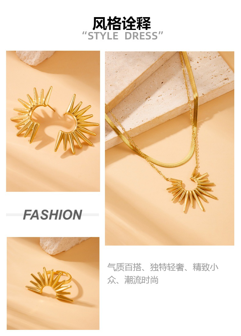 Europe and the United States cross-border retro Joker gold-plated exaggerated sunflower stainless steel ring finger earrings multilayer necklace jewelry suit