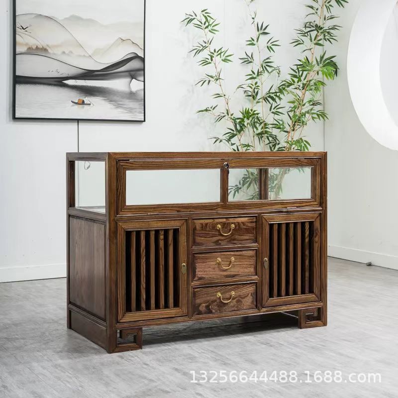 New Chinese Old Elm Jewelry Display Cabinet Glass Cabinet Elm Shop Look Container Retro Furniture Jewelry Cabinet
