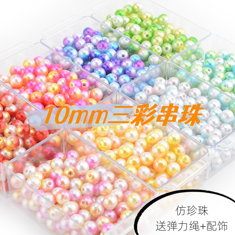 Children's Toy Beaded Handmade Boxed Artificial Pearl Three-Color DIY Beaded Set Girls Bracelet Bracelet Beads