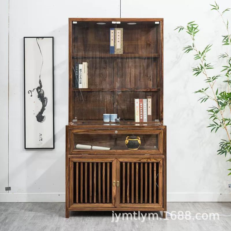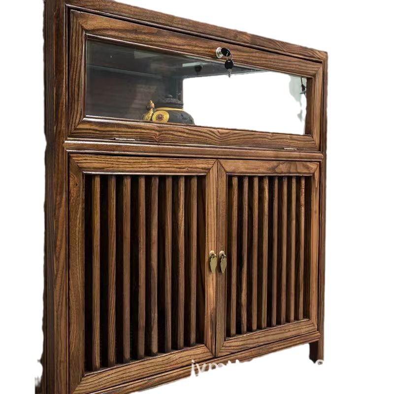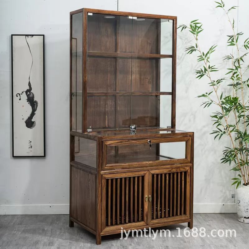 Old Elm Rectangular Jewelry Display Cabinet New Chinese Style Jewelry Cabinet Store Container Elm Furniture Storage Glass Cabinet