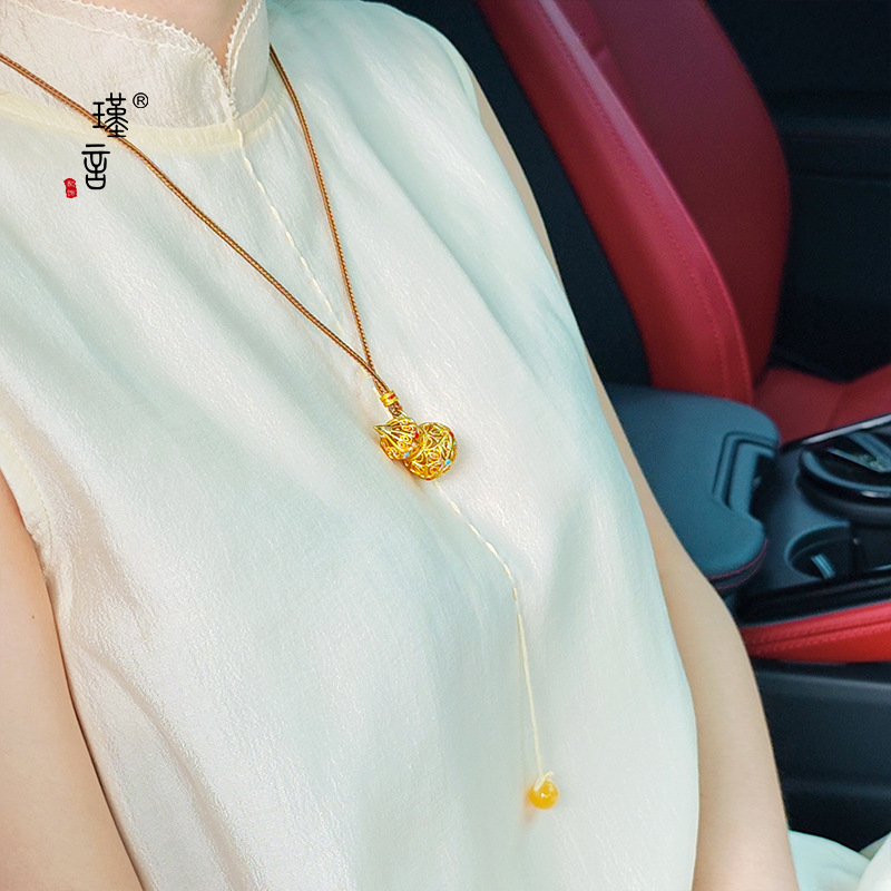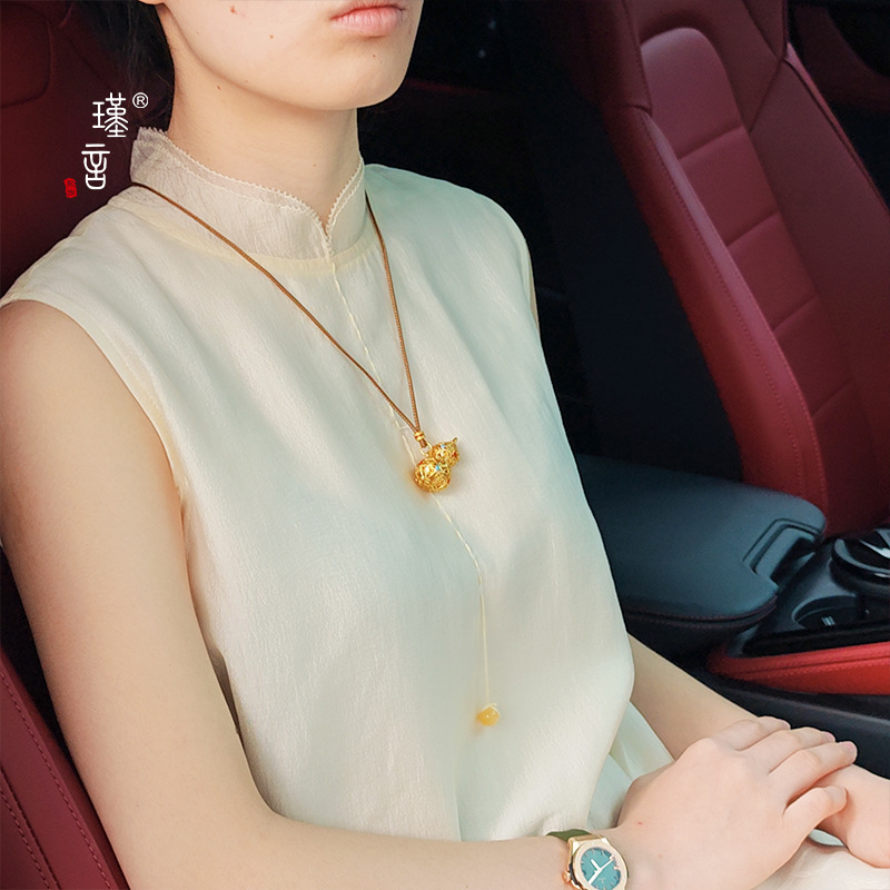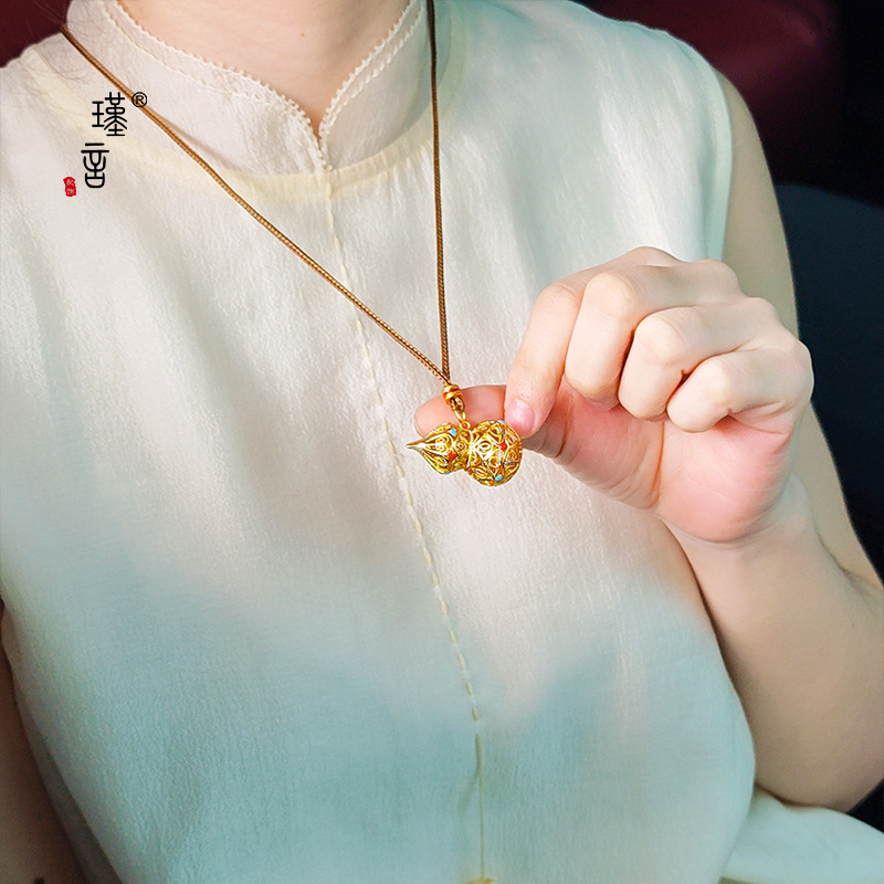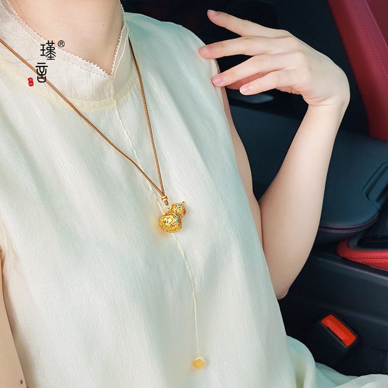 Jin Yan's New Chinese Style Don't Fell Color Ancient Sands Gold Burned Blue Filament Hollow Gourd Necklace Enamel Pendant Sweater