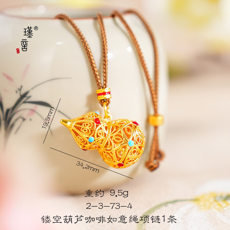 2-3-73-4 hollow filigree gourd double bead coffee ruyi rope necklace 1 piece