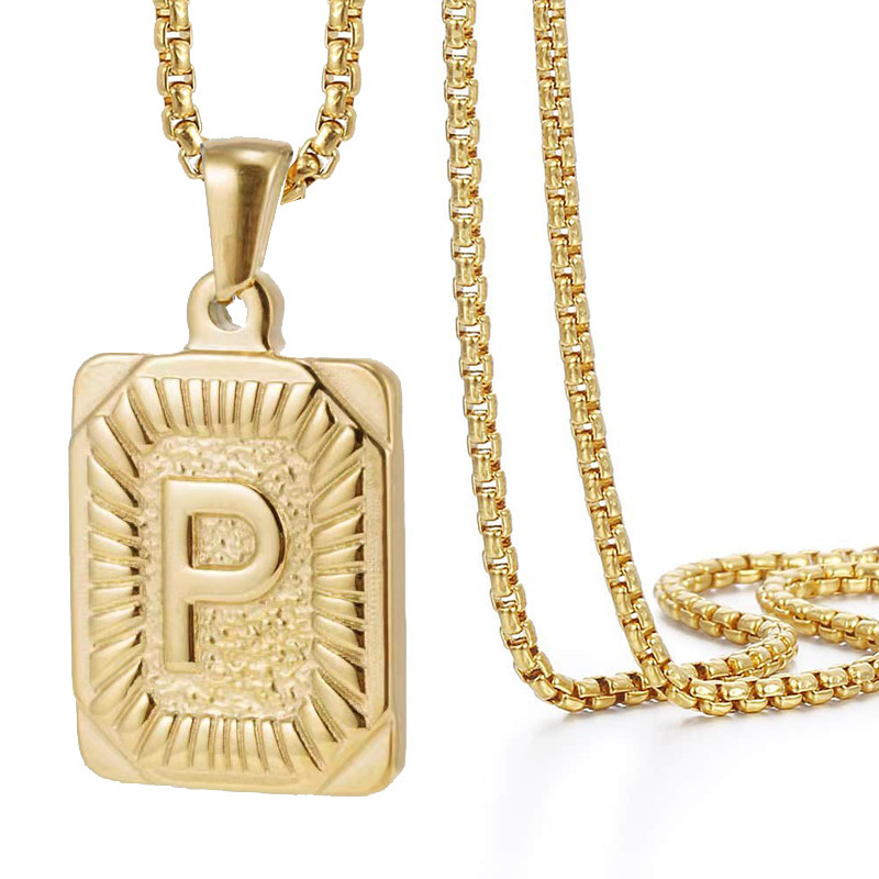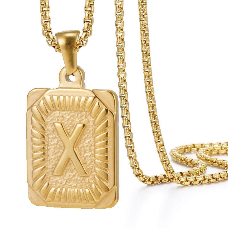 Cross-border Block 26 English Letter Hip Hop Fashion Pendant Rectangular 18K Gold Plated Oil Pressure Tagging Necklace Women