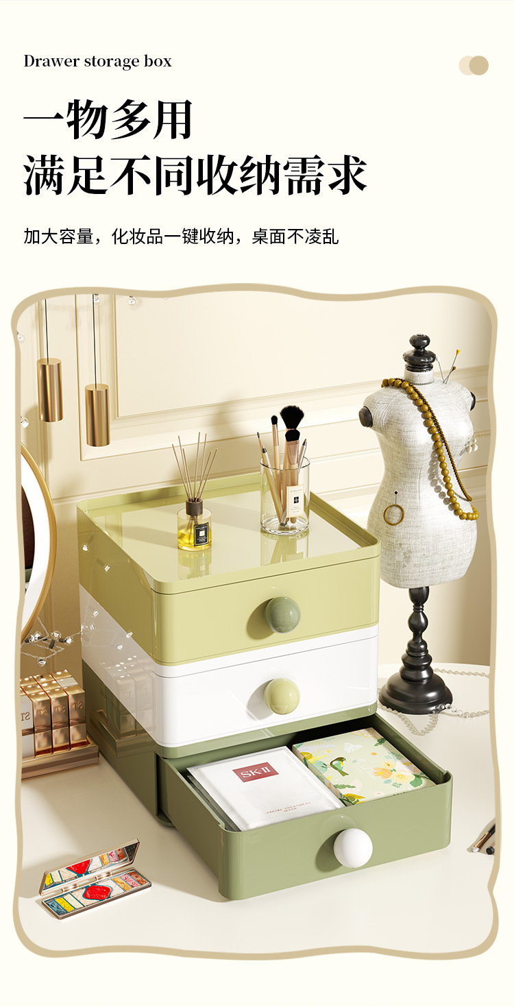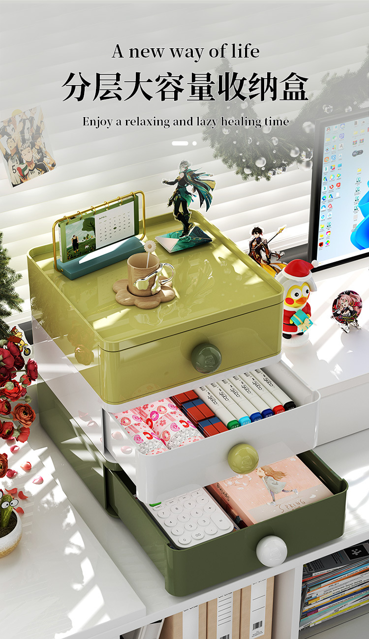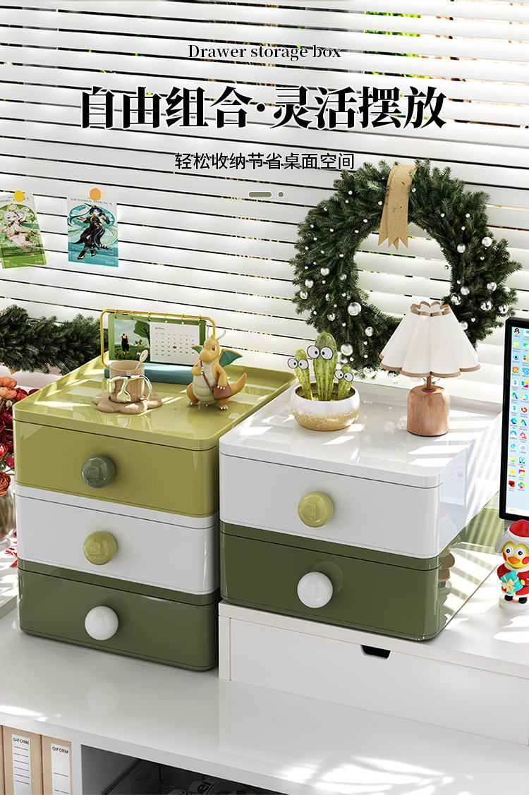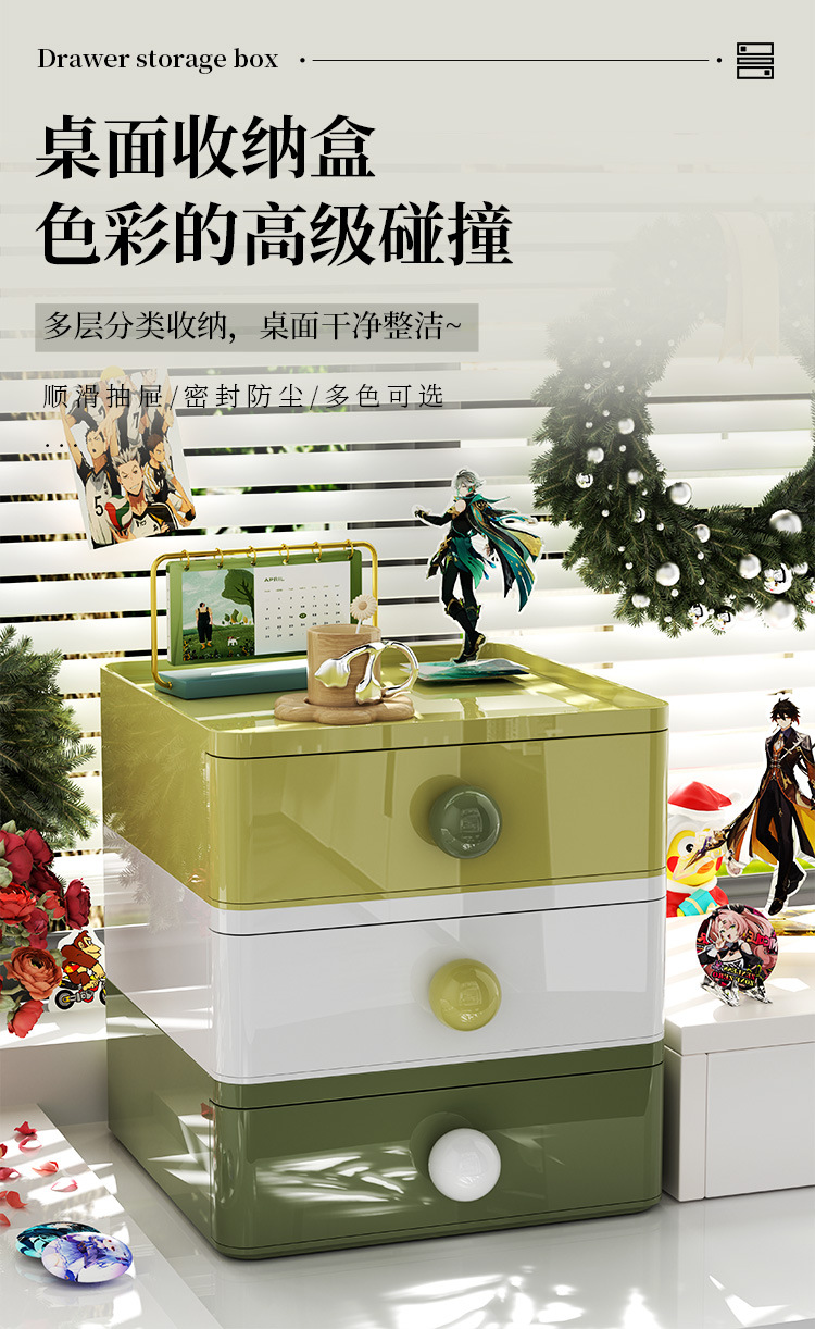 Desktop Dopamine Storage Box Drawer-Type Cosmetics Organization Plastic Storage Box Student Dormitory Desk Stationery