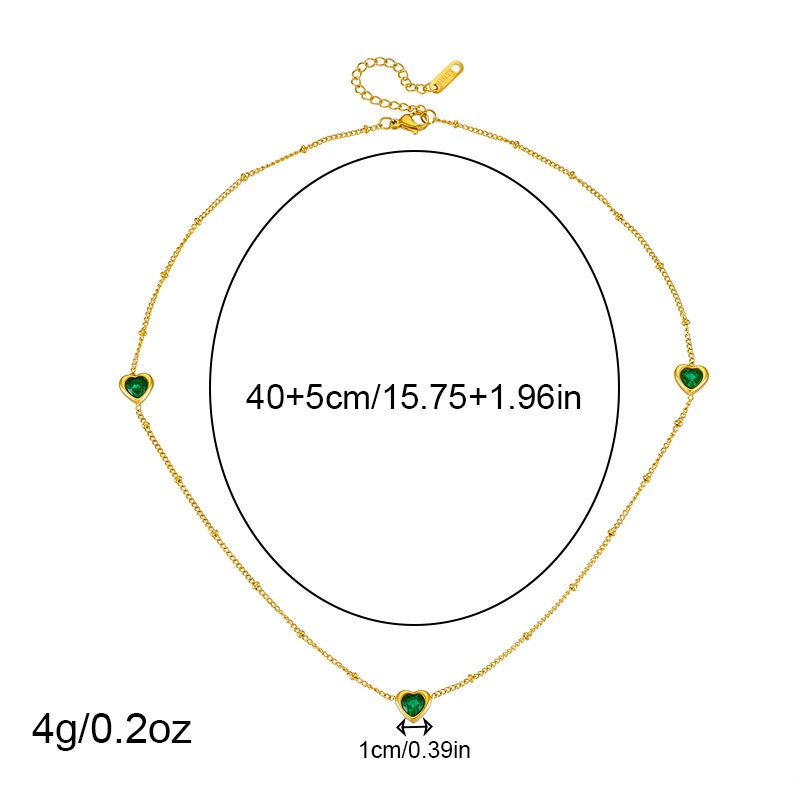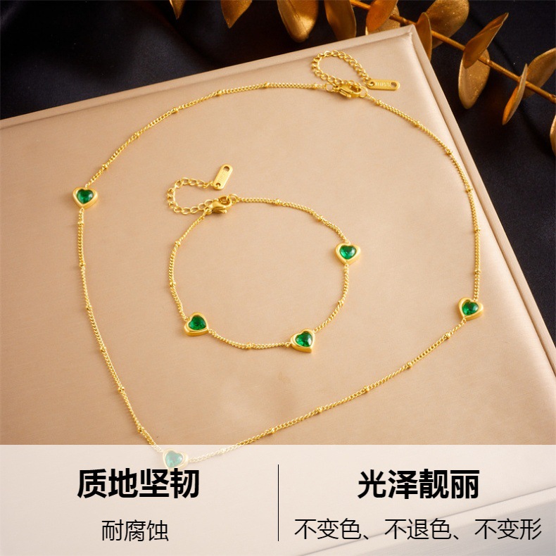 Cross-border fashion niche temperament inlaid green diamond love accessories chain stainless steel bracelet necklace jewelry suit