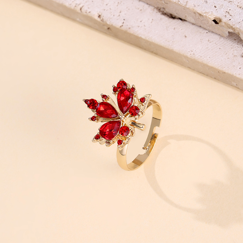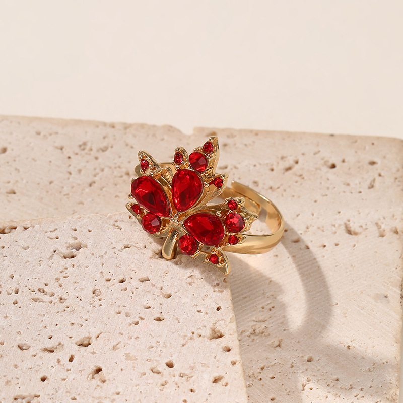 Cross-border New Arrival Light Luxury Red Maple Leaf Bracelet Exquisite Zircon Light Luxury All-match High-end Ring for Women