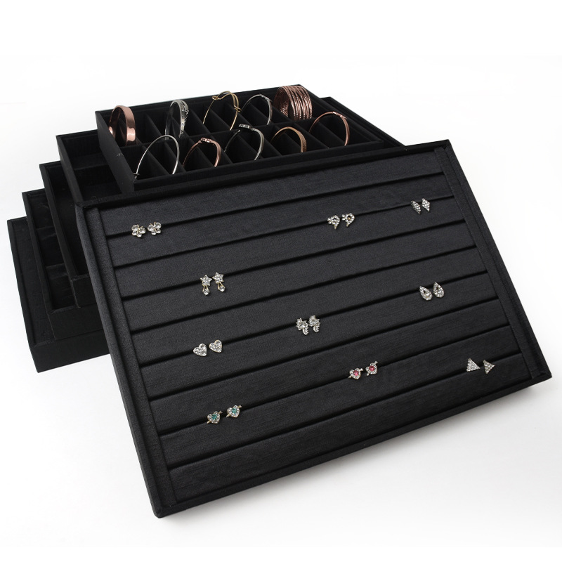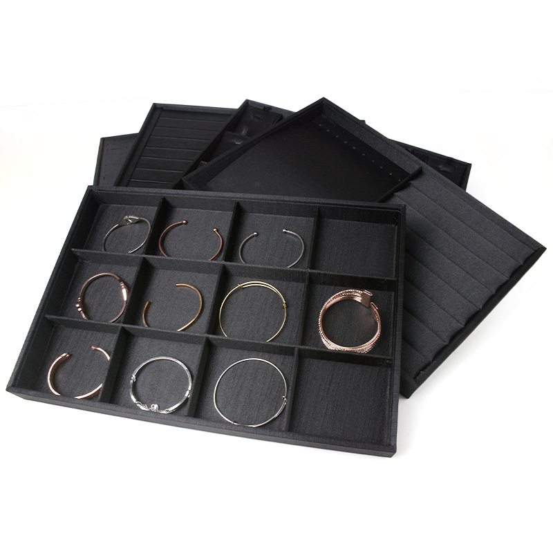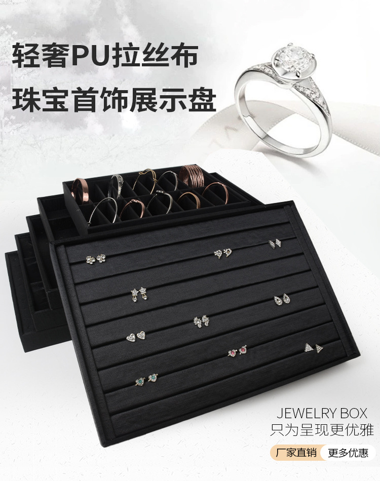 Black PU Brushed Cloth Jewelry Storage Plate Display Tray Window Display Props Ring Earrings Jewelry Emerald Plate
