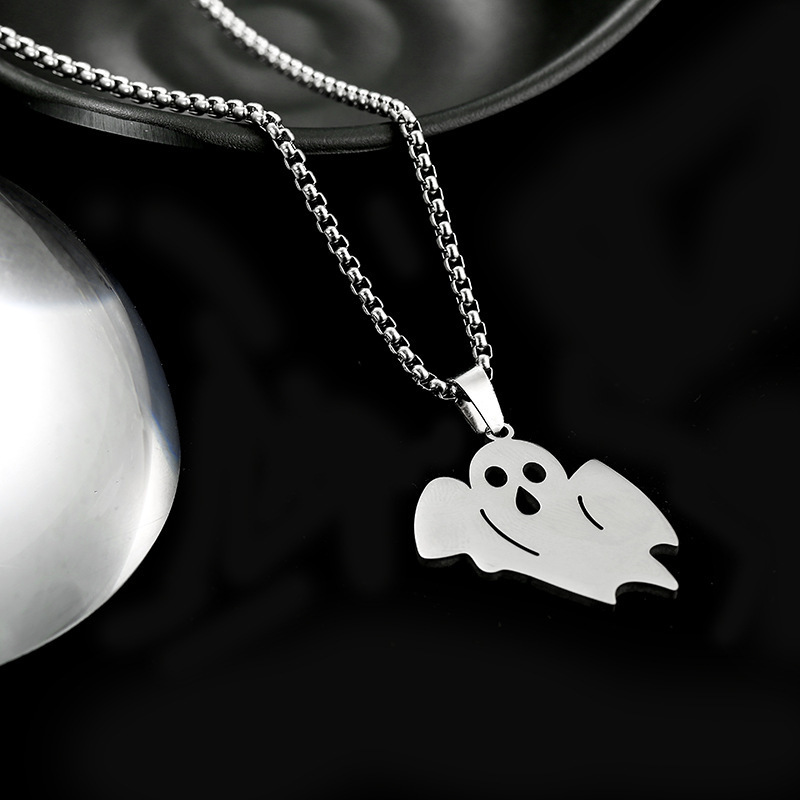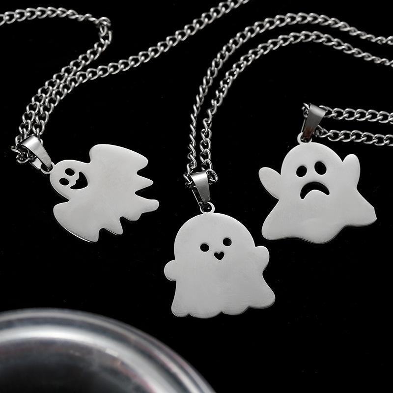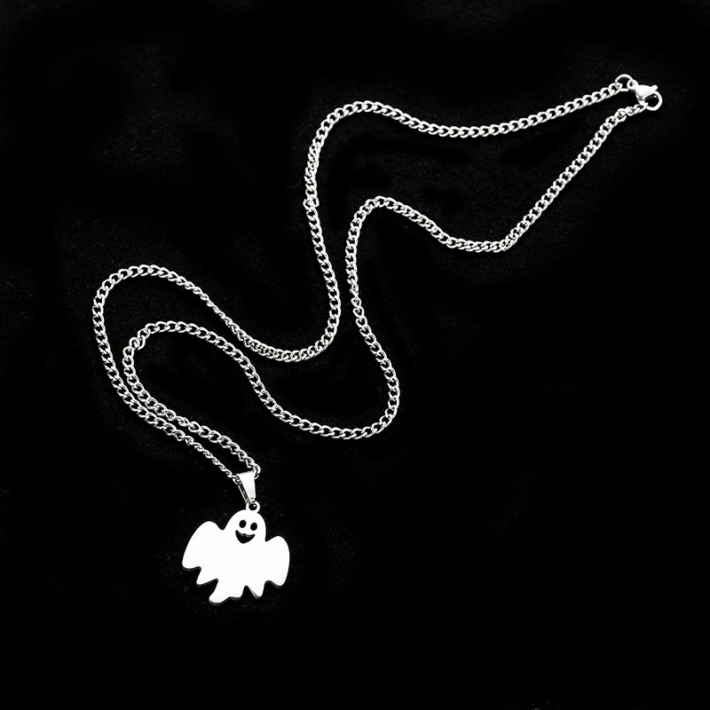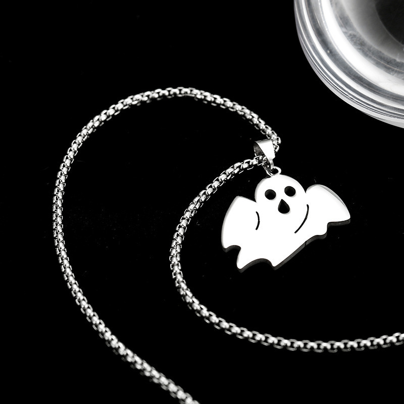 Cross-border hot small ghost pendant stainless steel necklace does not fade Halloween fashion cartoon funny accessories wholesale