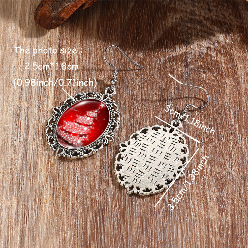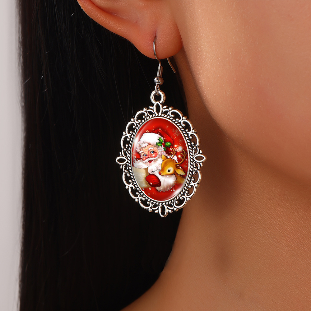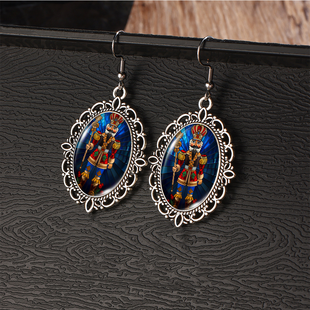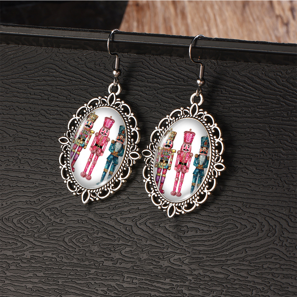 Cross Border Christmas Stainless Steel Ear Hook Oval Lace Earrings Christmas Nutcracker Earrings Christmas Soldier Earrings