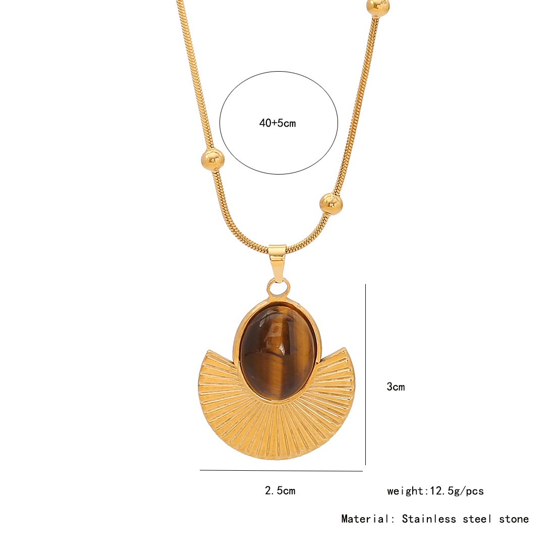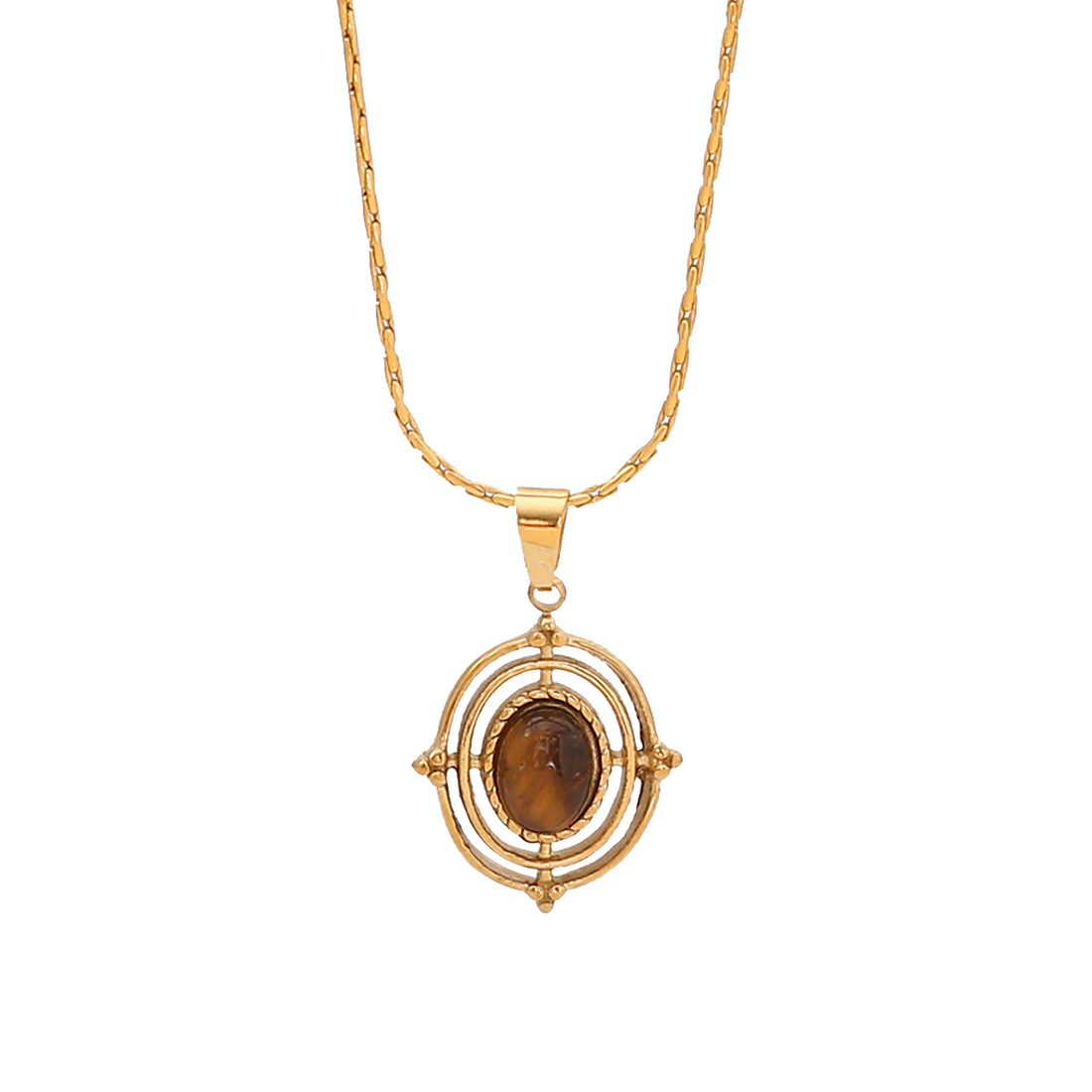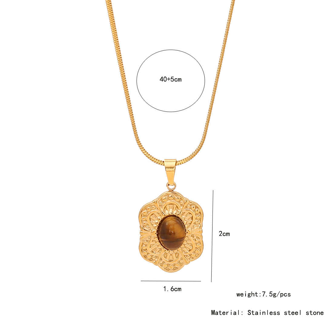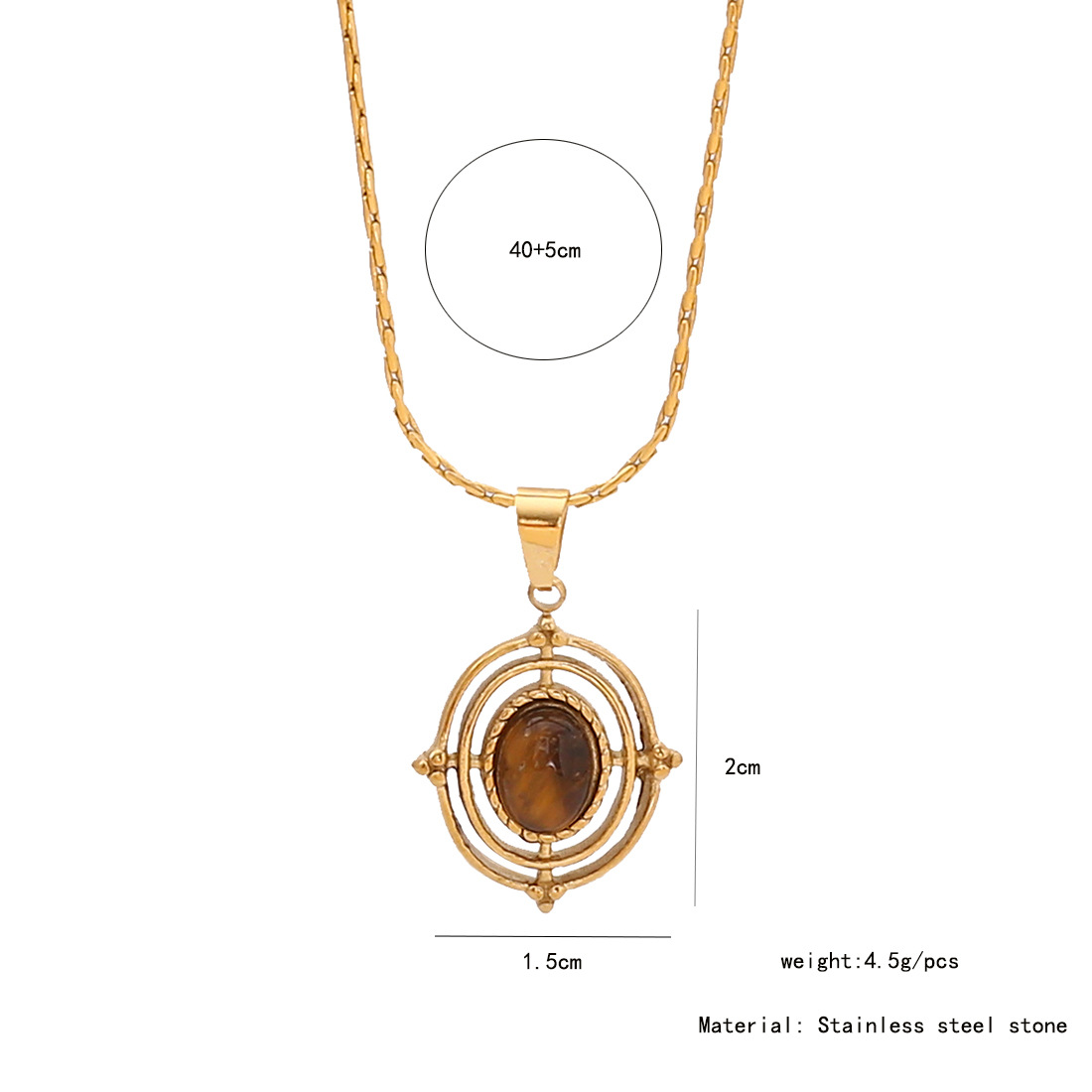 [Ice Moe] Maillard Wind Tiger Stone Pendant Geometric Stainless Steel Necklace Light Luxury Vintage Necklace N1443