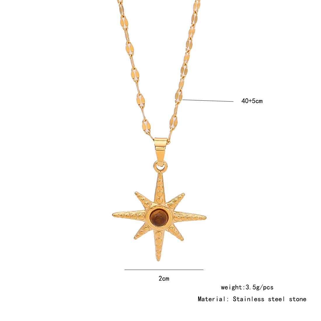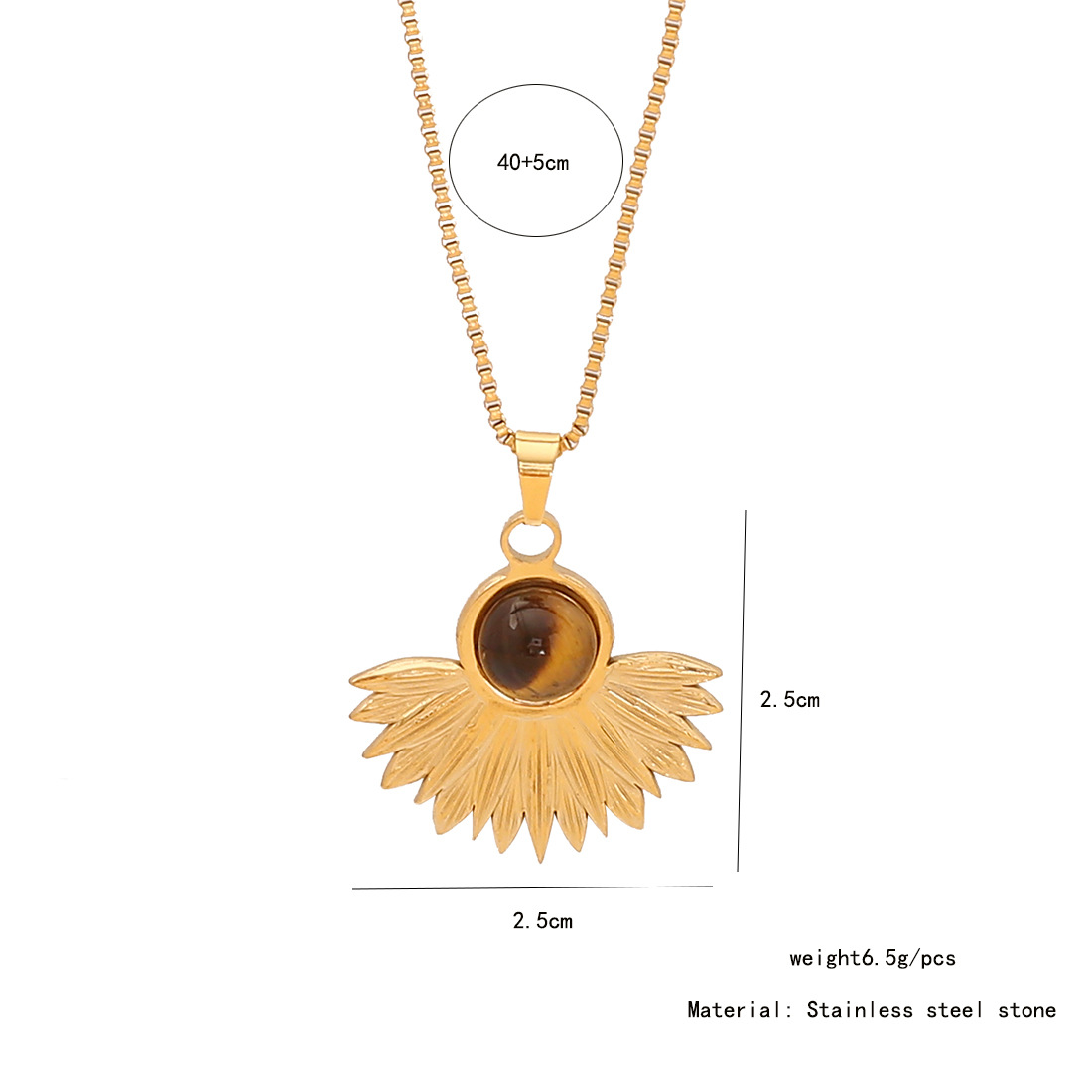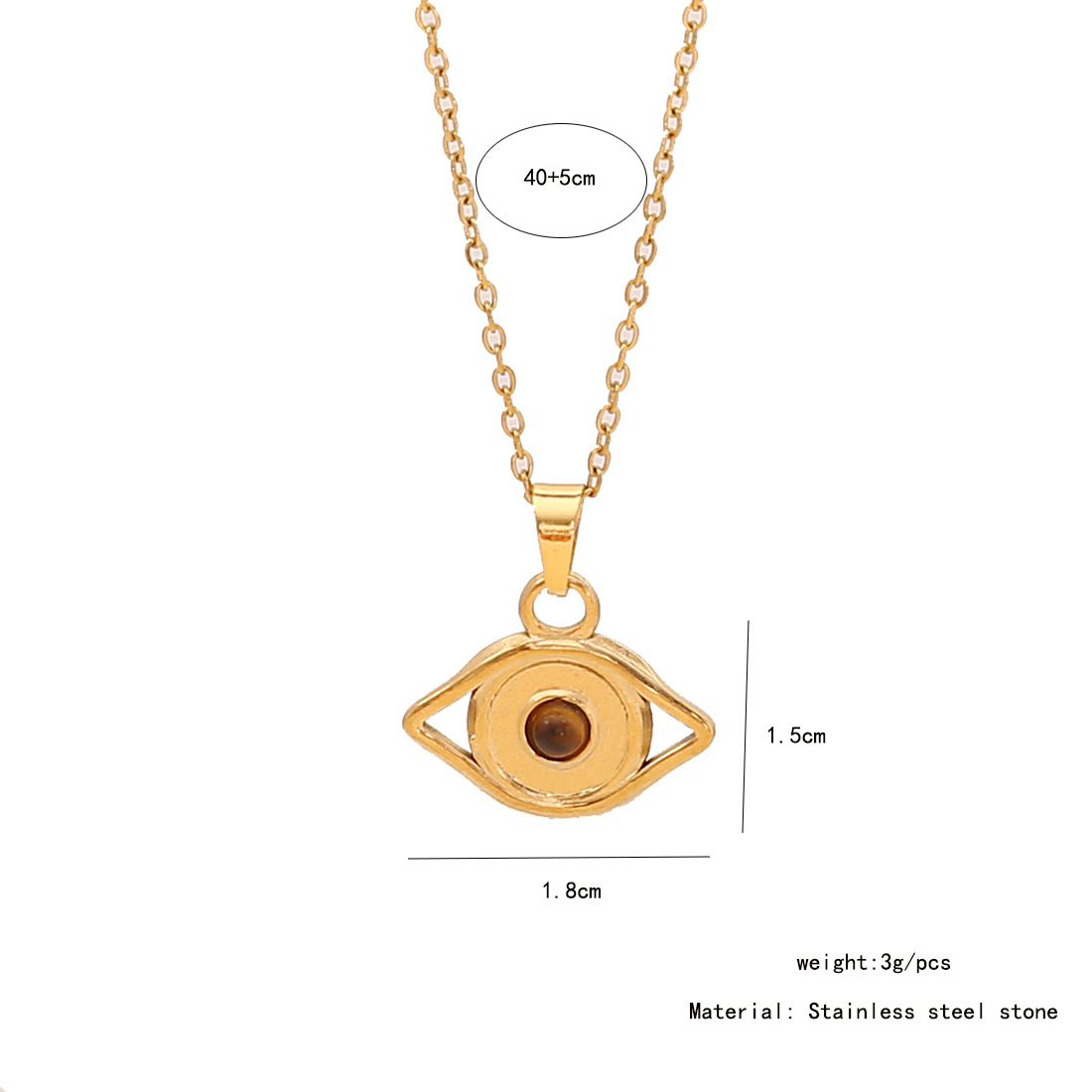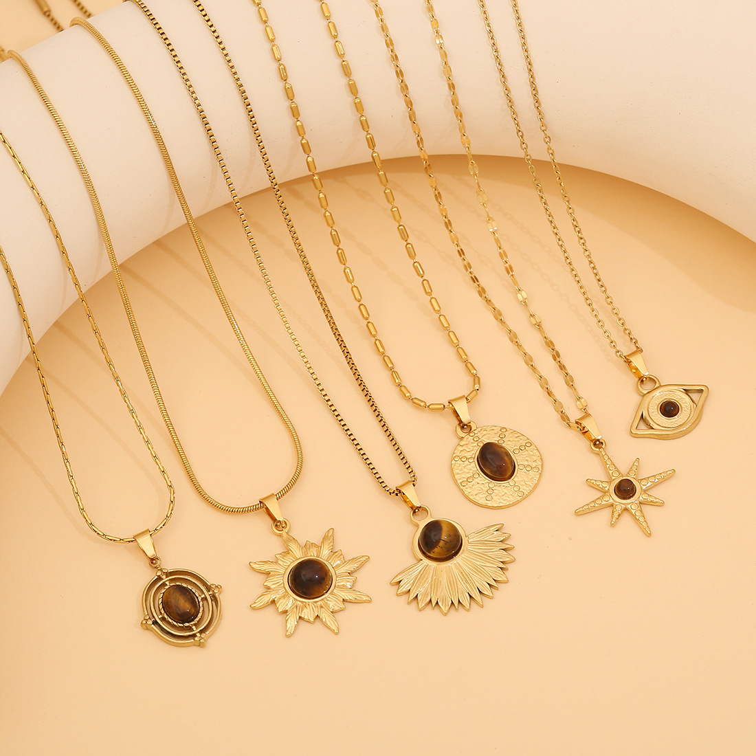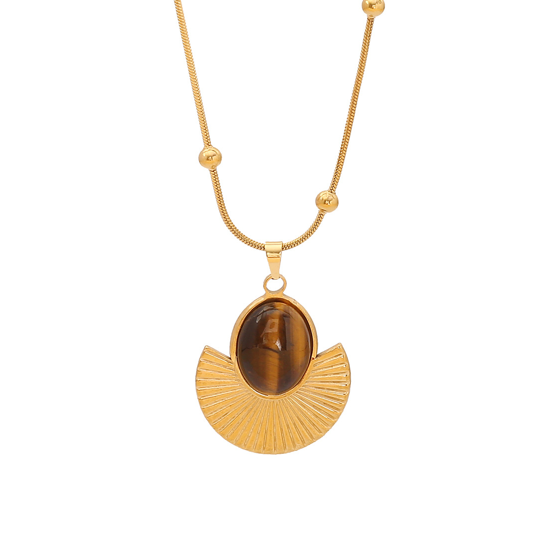 [Ice Moe] Maillard Wind Tiger Stone Pendant Geometric Stainless Steel Necklace Light Luxury Vintage Necklace N1443