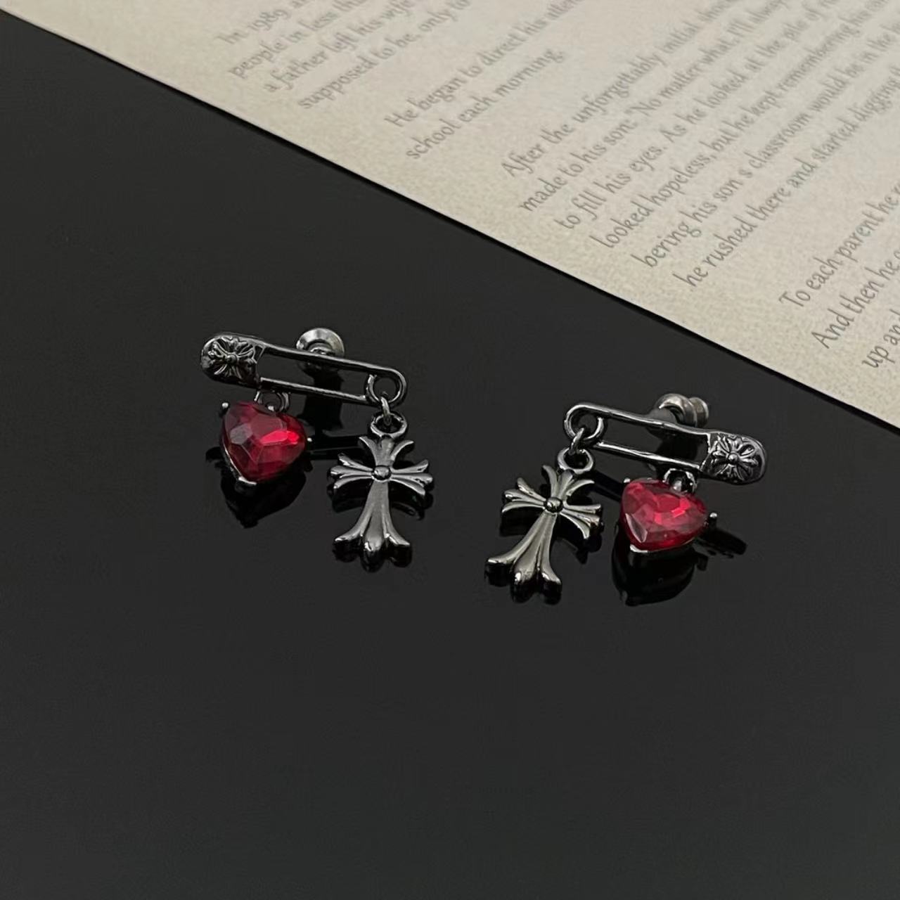 Dark Cross Love Earrings Women's Light Luxury High-end Temperament Atmospheric Unique Exquisite Earrings 2024 New