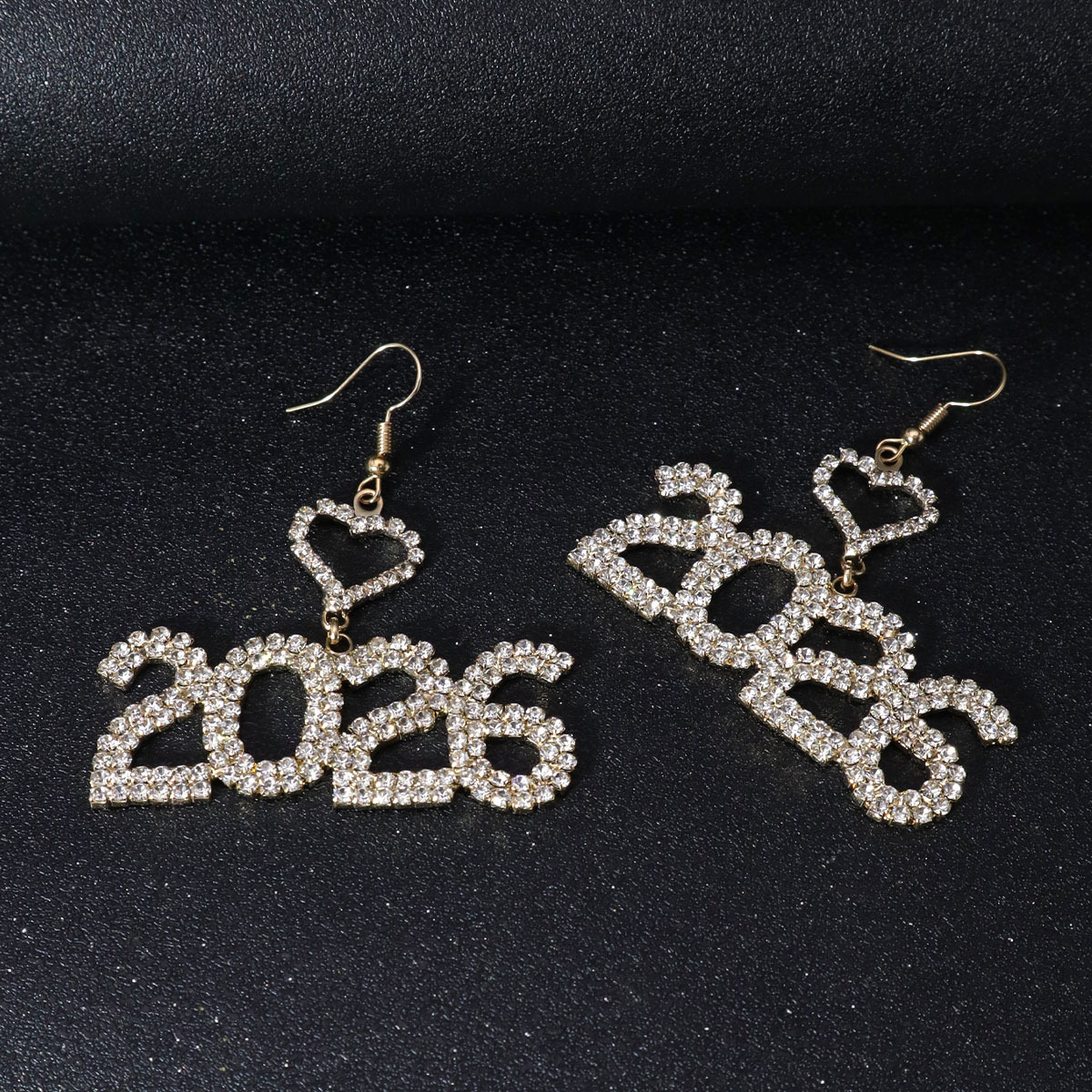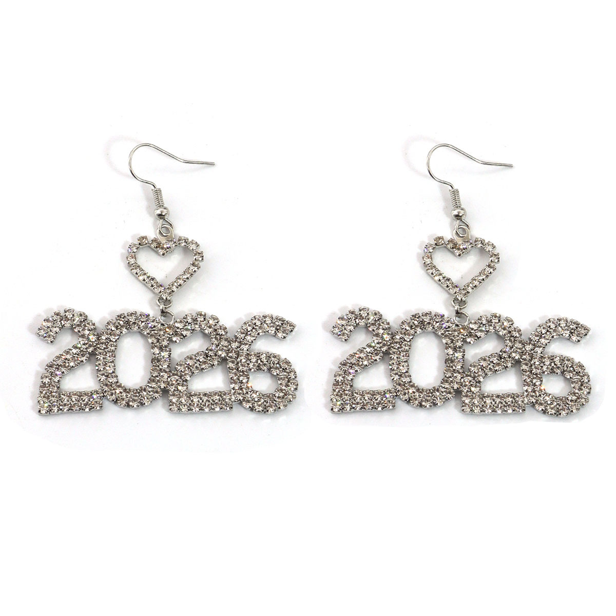 European and American Popular Digital 2026 Earrings, Rhinestone Digital Earrings, Full Diamond Heart Pendant Earrings Jewelry