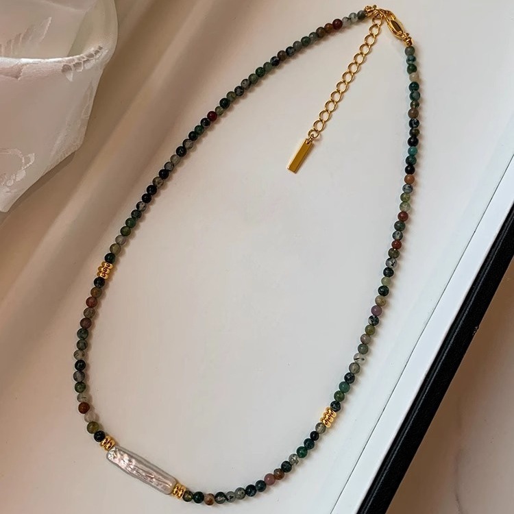 Color: Silver Strip Freshwater Pearl Indian Agate Necklace