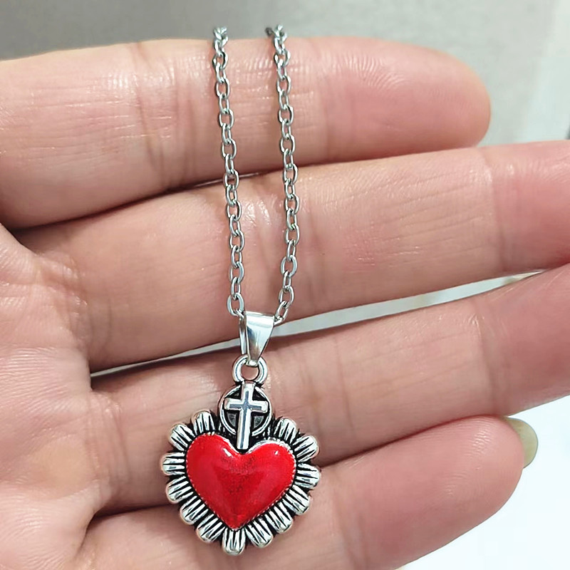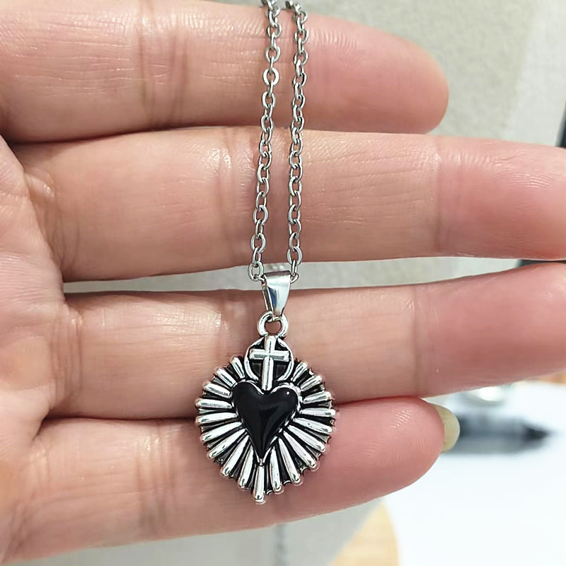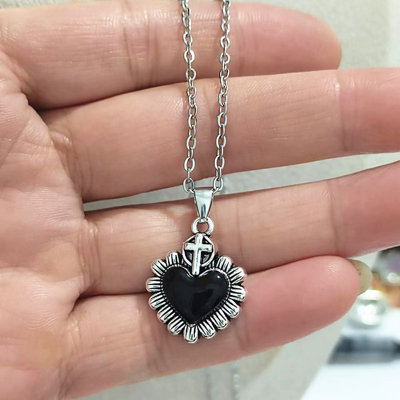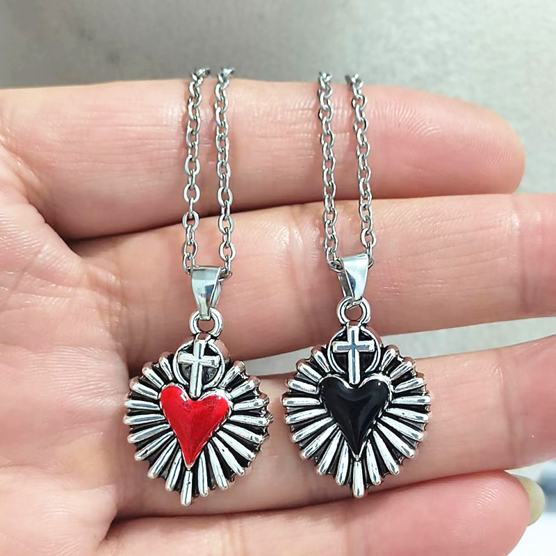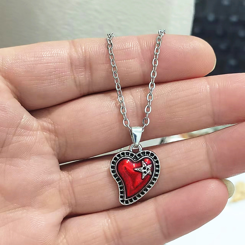 Cross-border foreign trade Amazon burning black red heart pendant necklace ladies gift factory direct sales