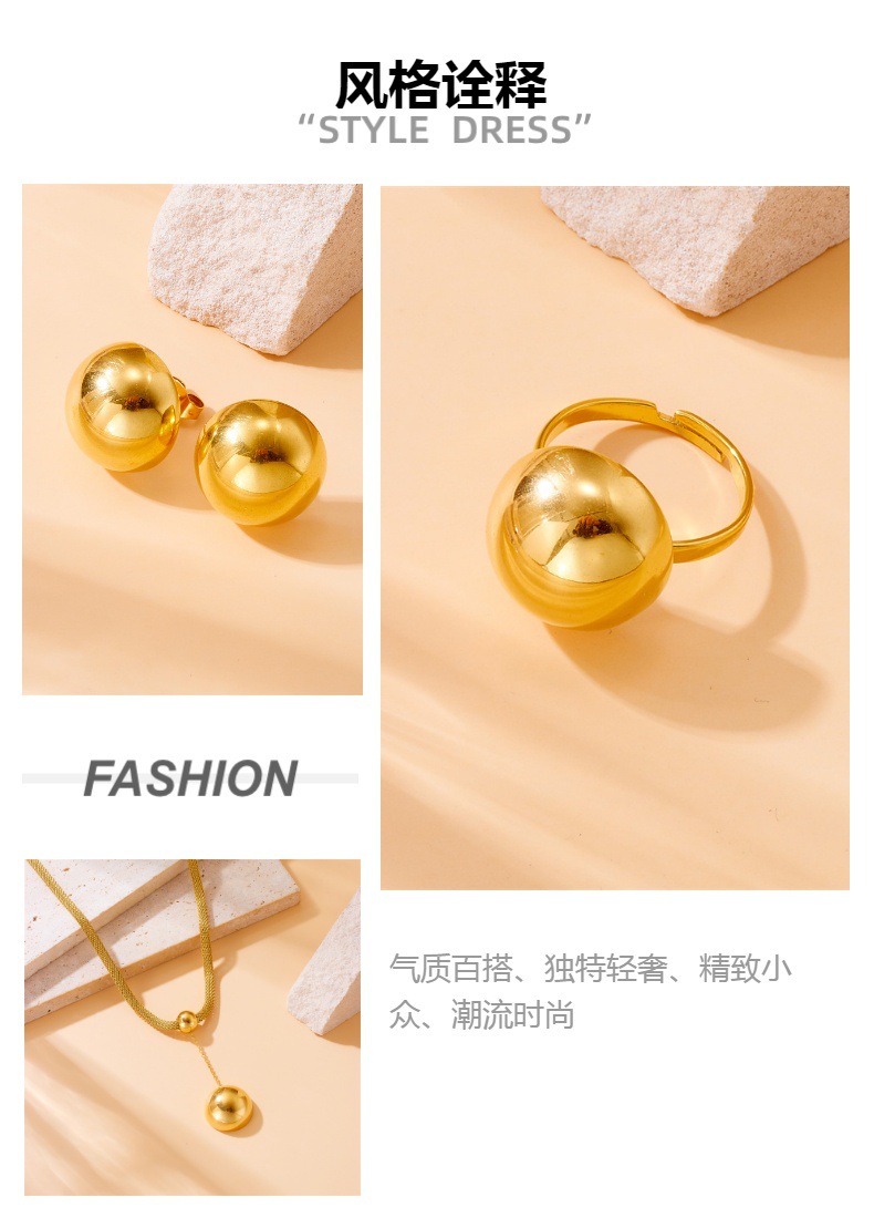 Cross-border fashion temperament retro cold scenery gold-plated stainless steel semicircle earrings ring necklace suit