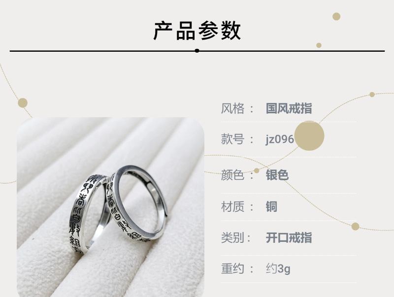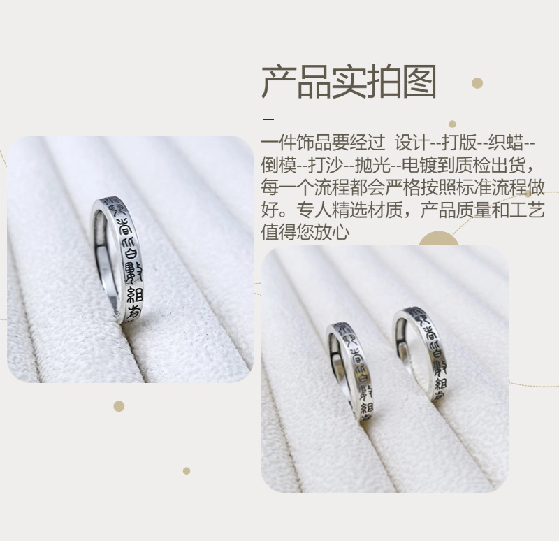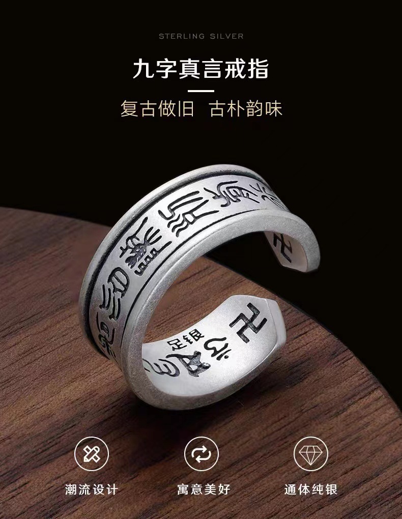 Taoist Nine-Character Mantra Ancient Style Ring Personalized Electroplated Silver Simple Open Hand Ornaments for Men and Women Thai Silver Retro Jewelry