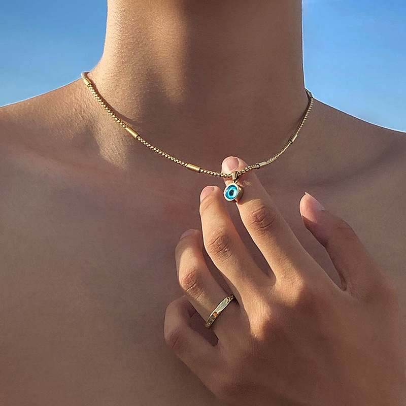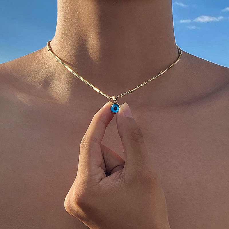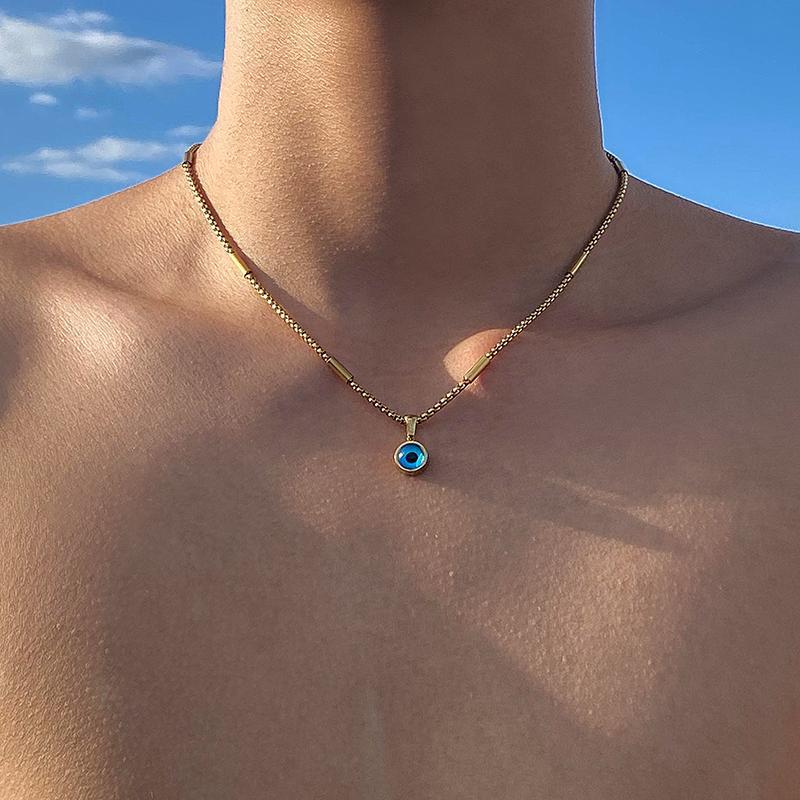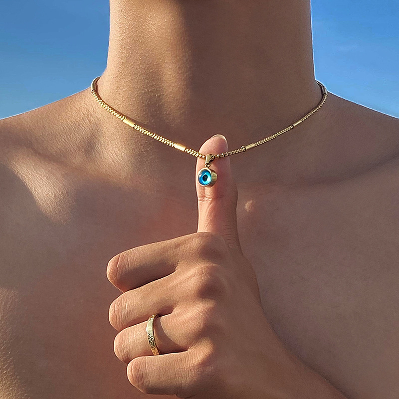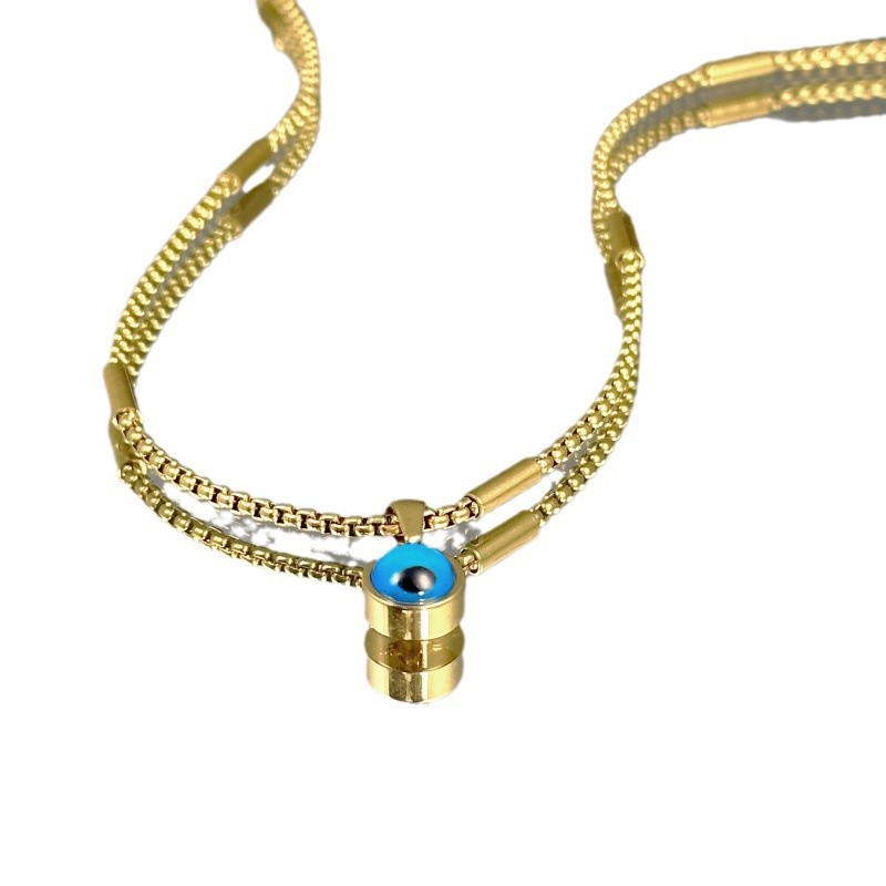 Golden Devil's Eye Twist Clavicle Chain Men's Personality All-match Niche Design Advanced Sense Necklace Titanium Steel Necklace Trendy