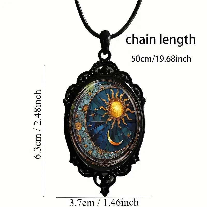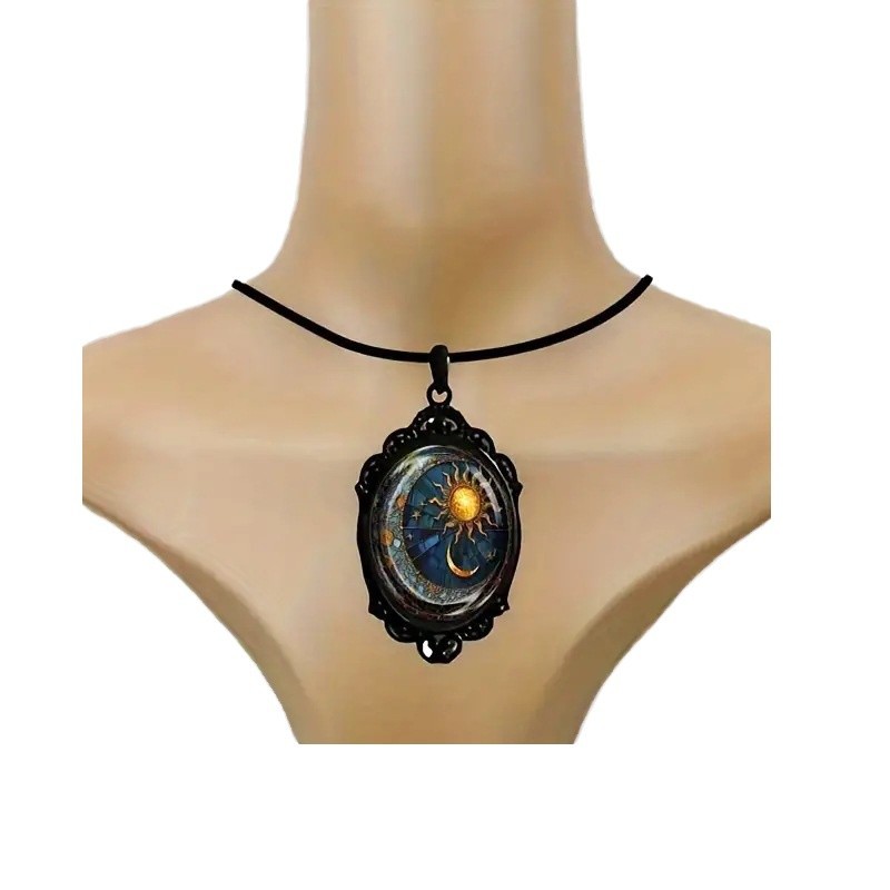 Cross Border New Elegant Necklace Sun and Moon Pattern & Black Frame, Vintage Romantic Jewelry