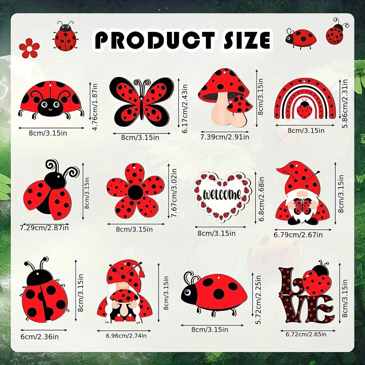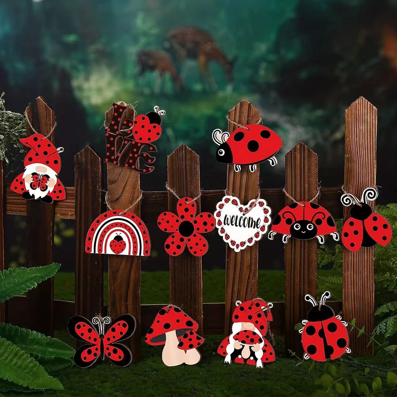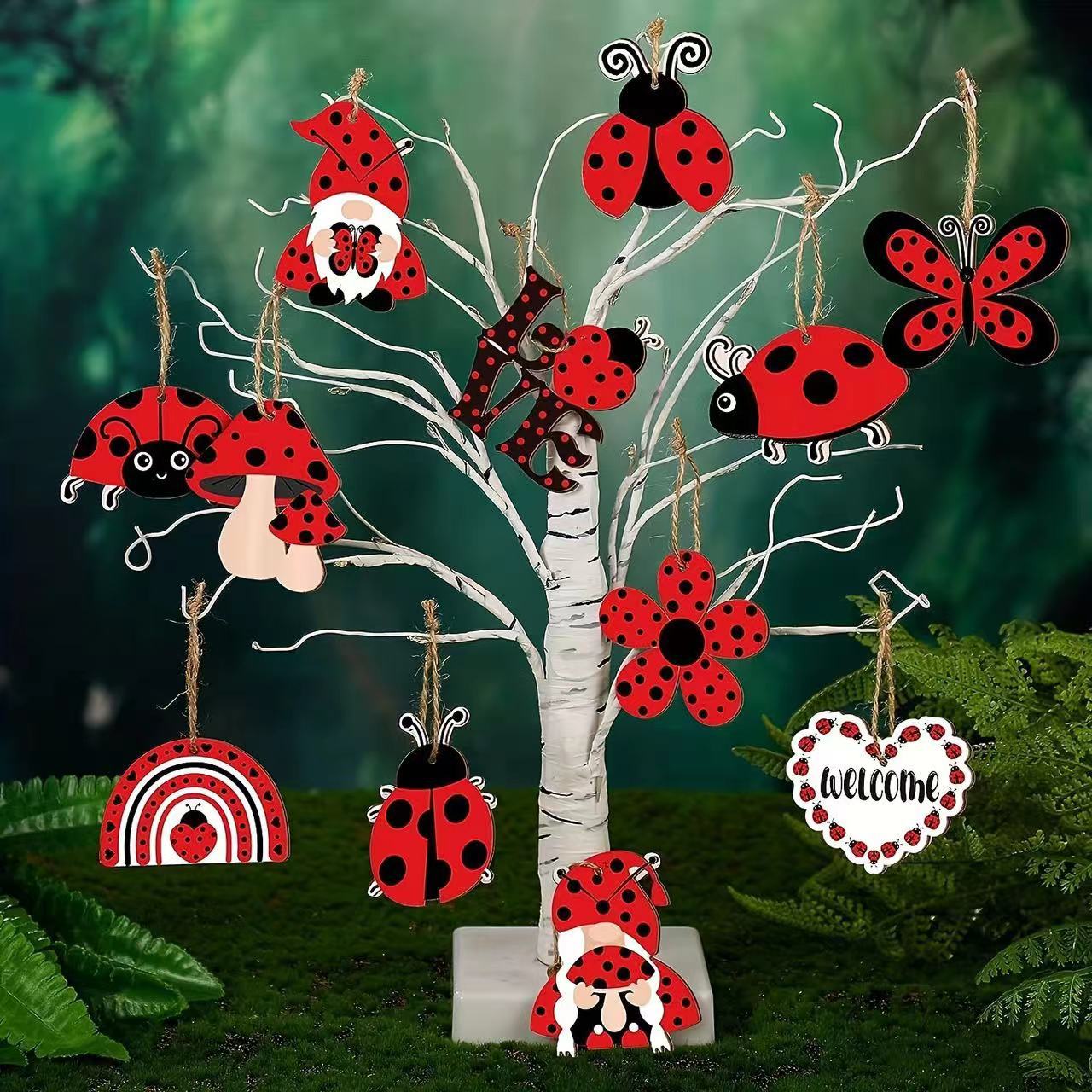 Cross Border New Products Wooden Hanging Ornaments Christmas Tree Decorative Wooden Ladybug Pendant Decorative Strap for Hawaii Party