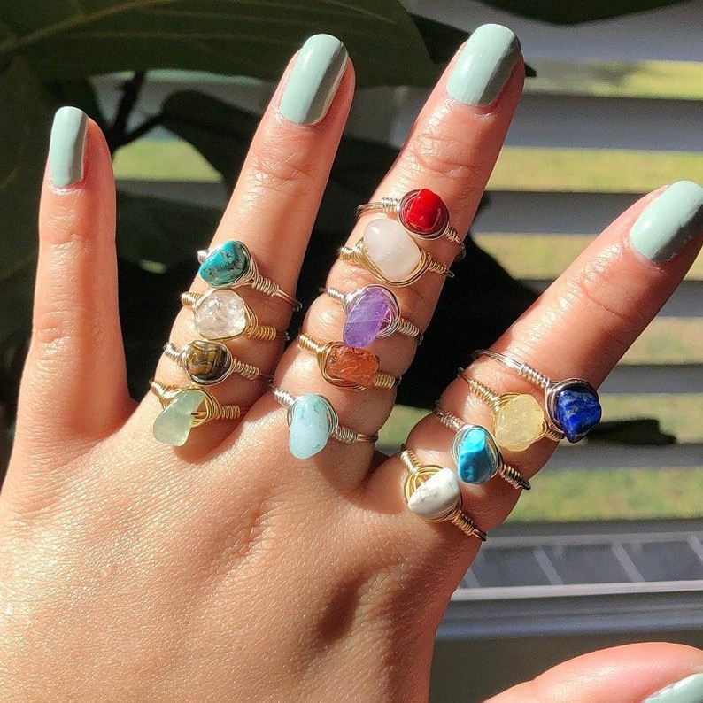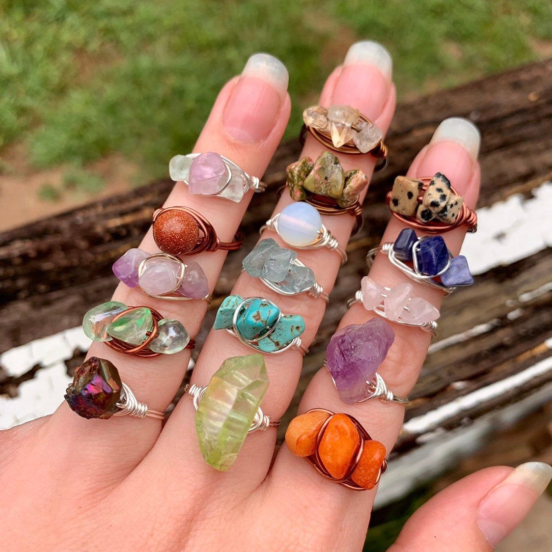 Personalized Exquisite Wire Wrapped Crystal Ring Handmade Natural Stone Gold and Silver Ring Healing Gemstone Long Ring