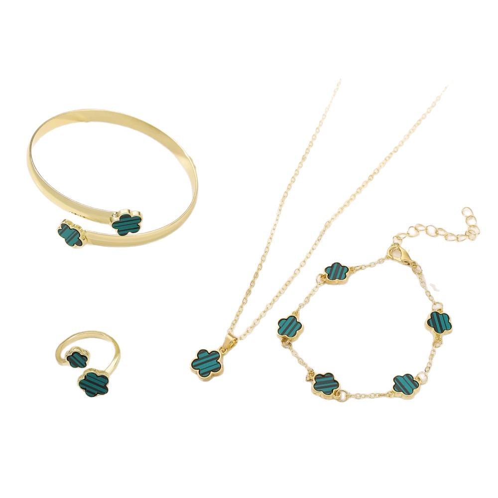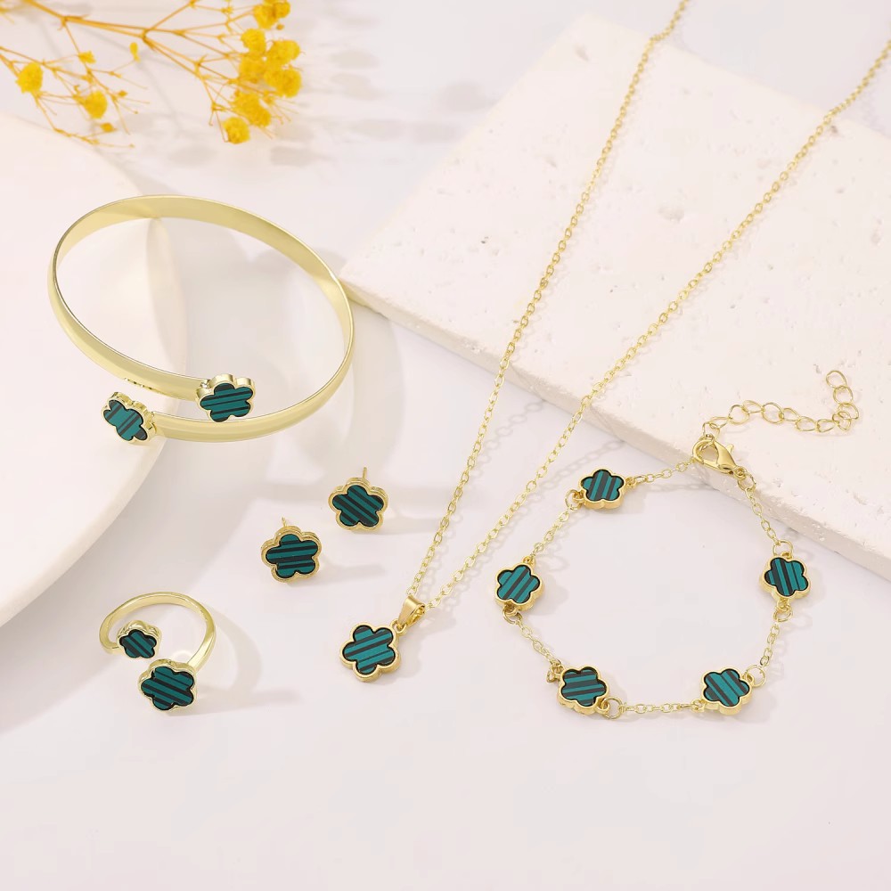 Cross-border Hot Selling Five-petal Flower Jewelry suit Women's Simple Oil Dropping Lucky Flower Necklace All-match Bracelet Earrings 5-piece Set