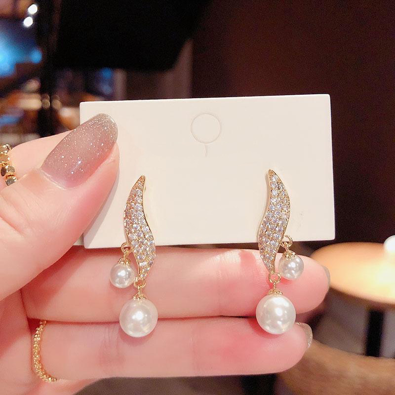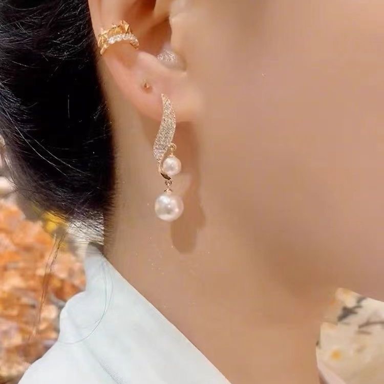 Fashion Elegant Golden Earrings Pearl Diamond Design Earrings S925 Silver Needle High-end Sense Exquisite Women's Earrings