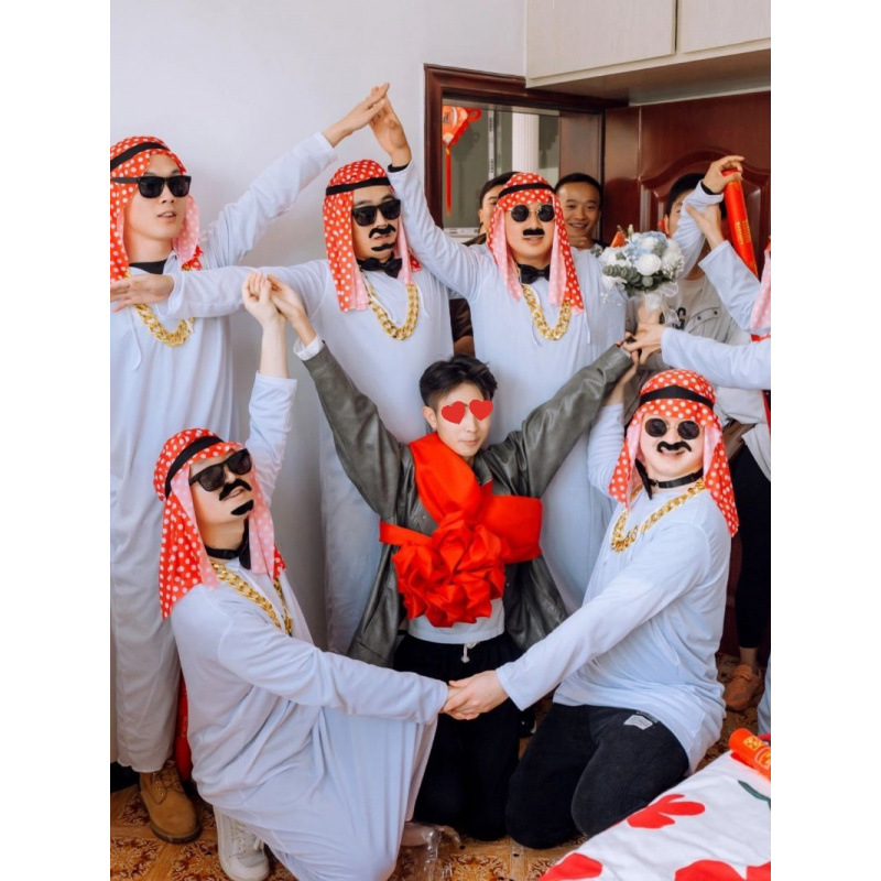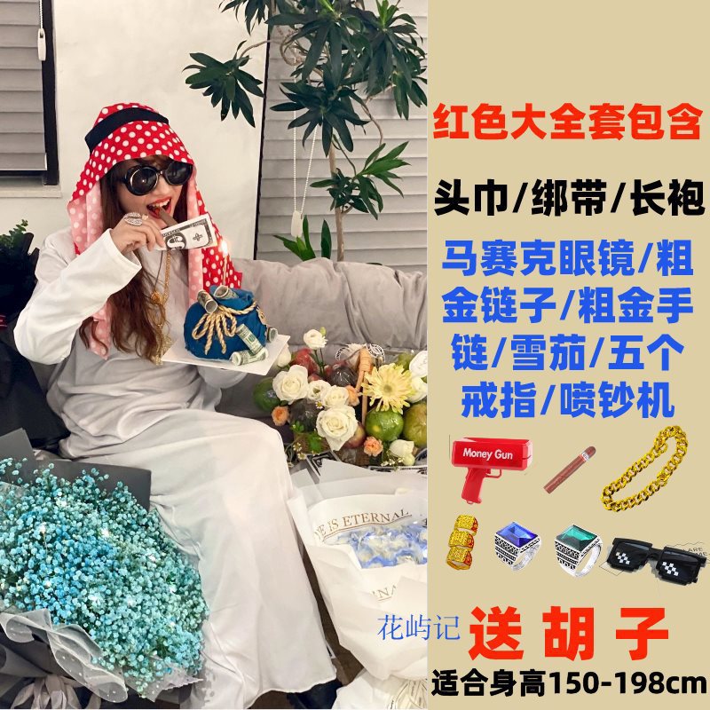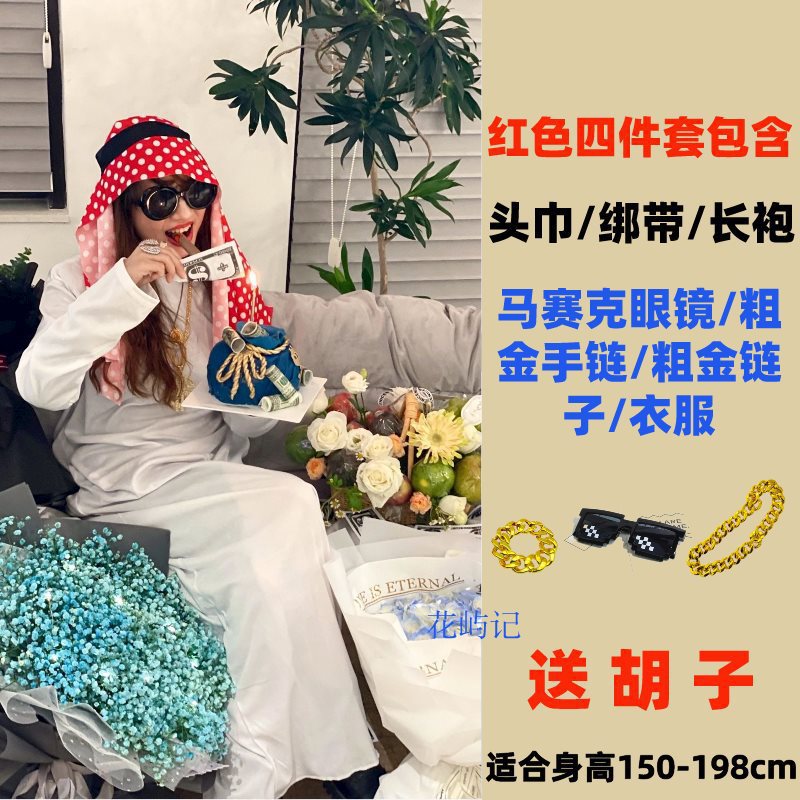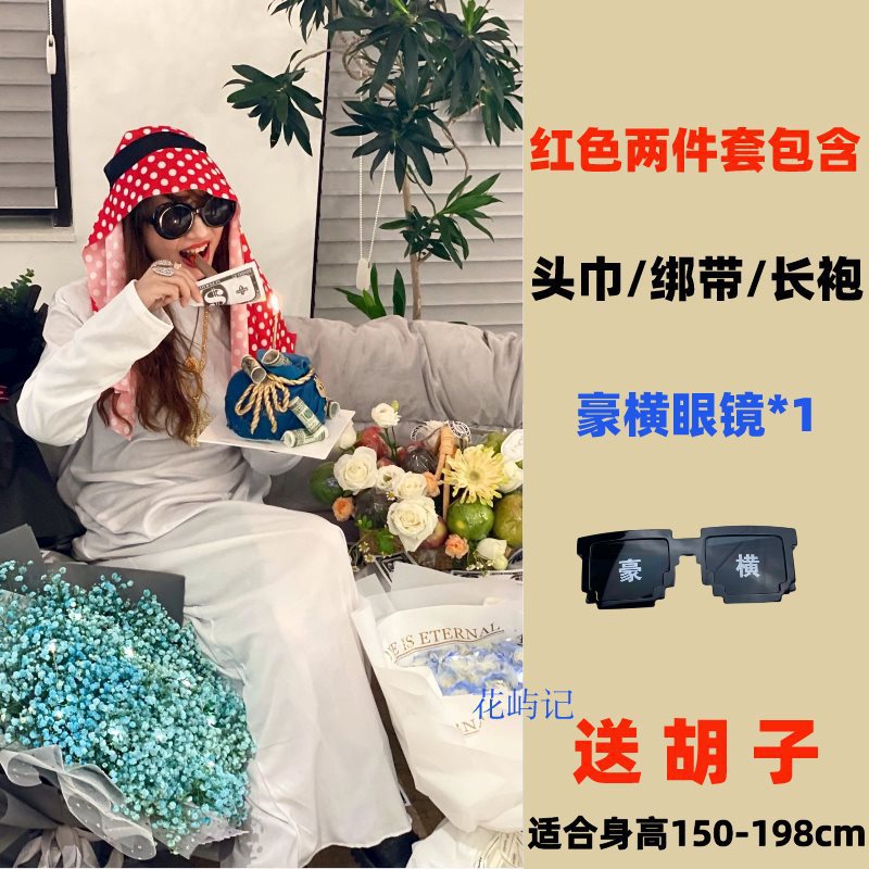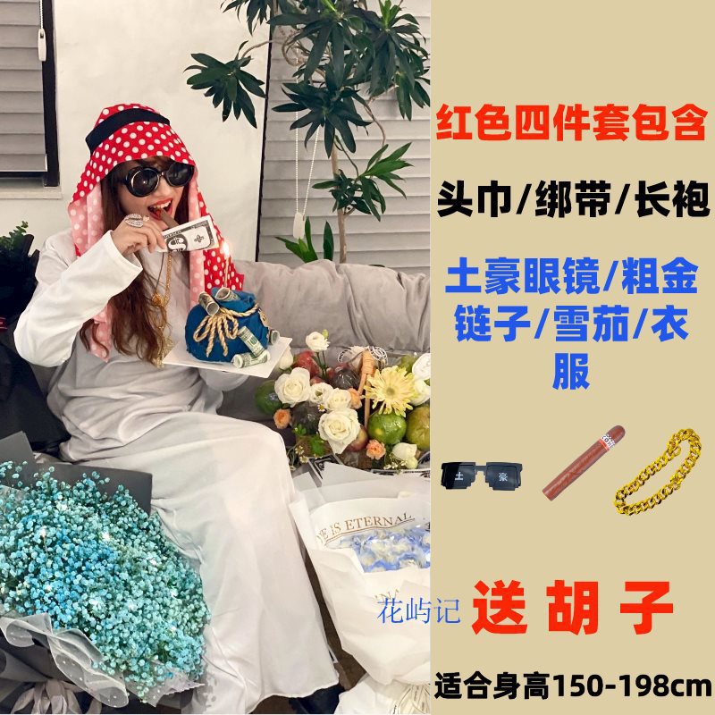 Color: $ [four-piece set] red model + rich glasses + thick gold bracelet + thick gold necklace
