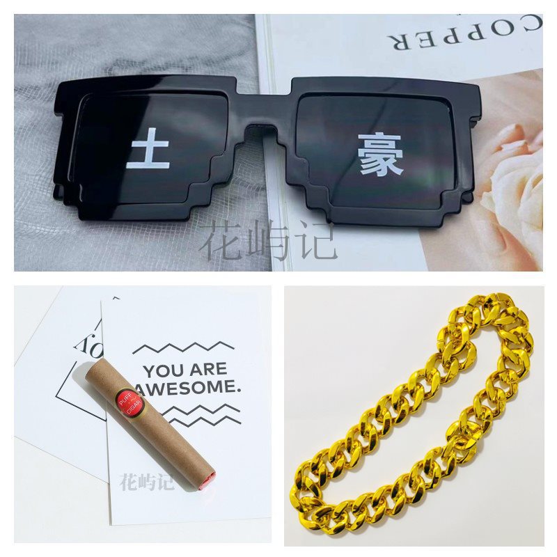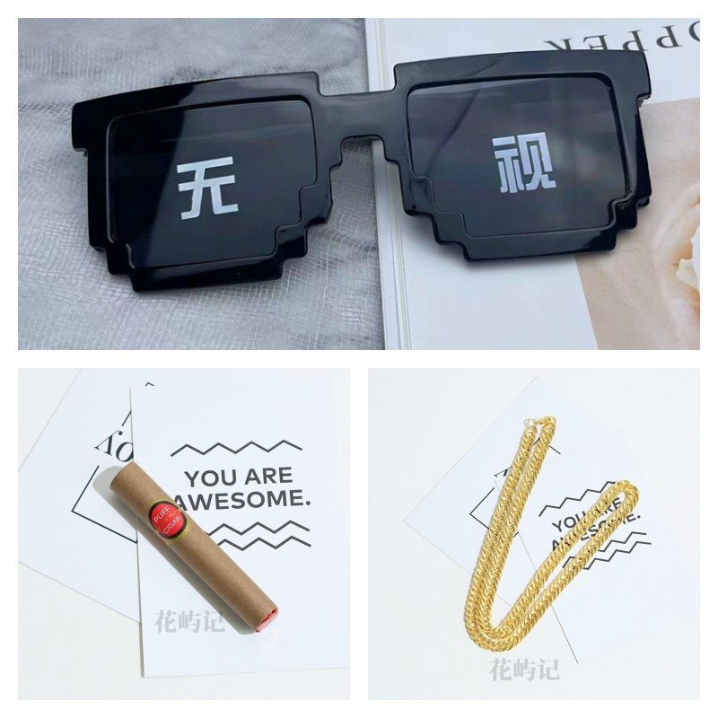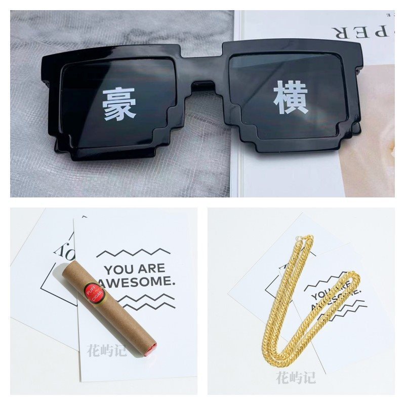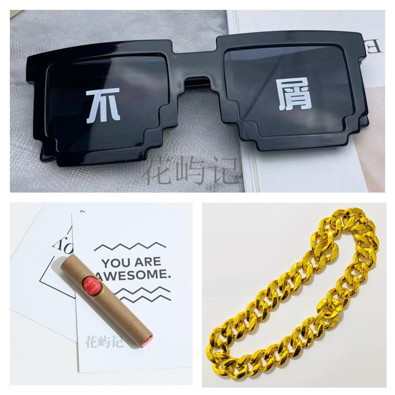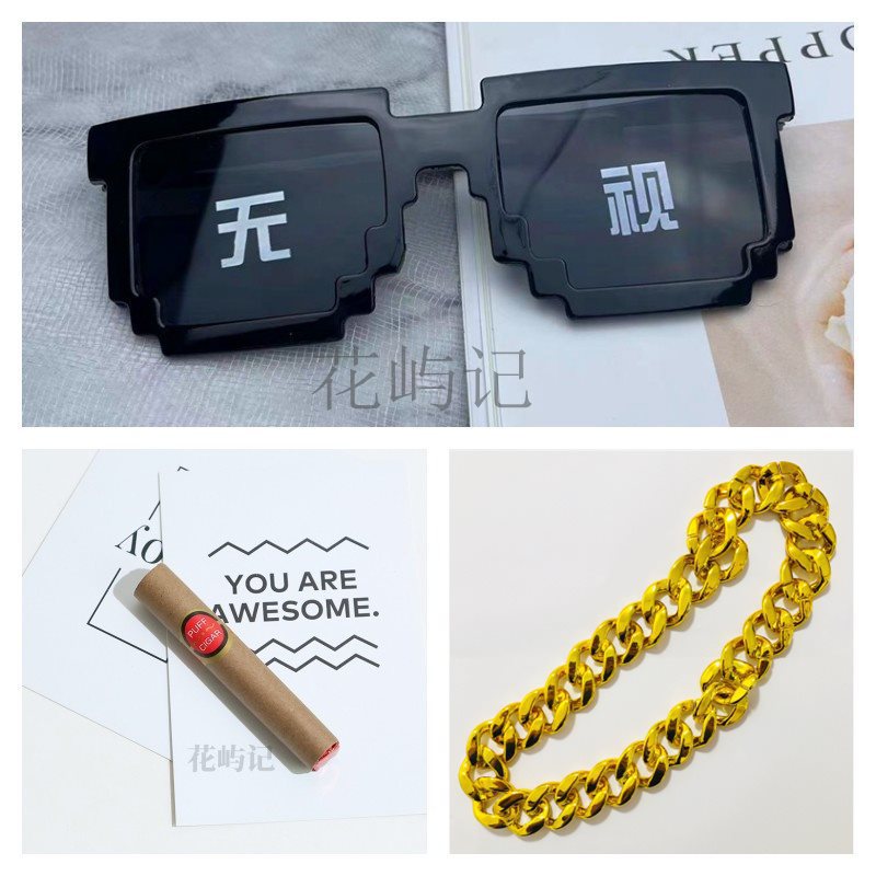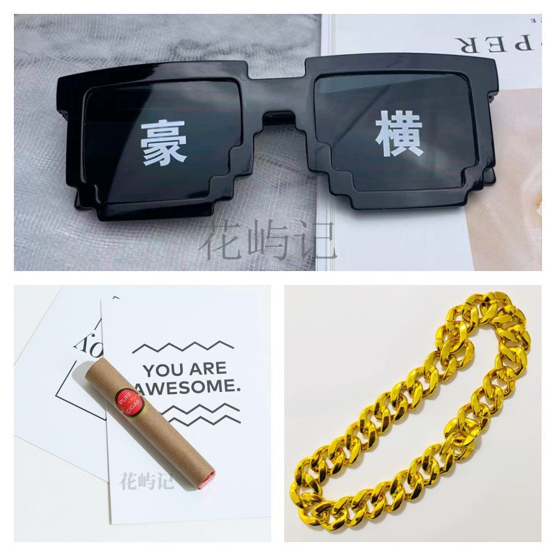 Color: $ [four-piece set] white model + mosaic glasses + cigar props + coarse gold necklace