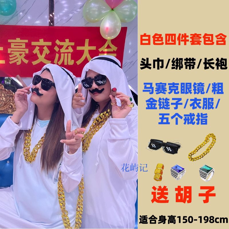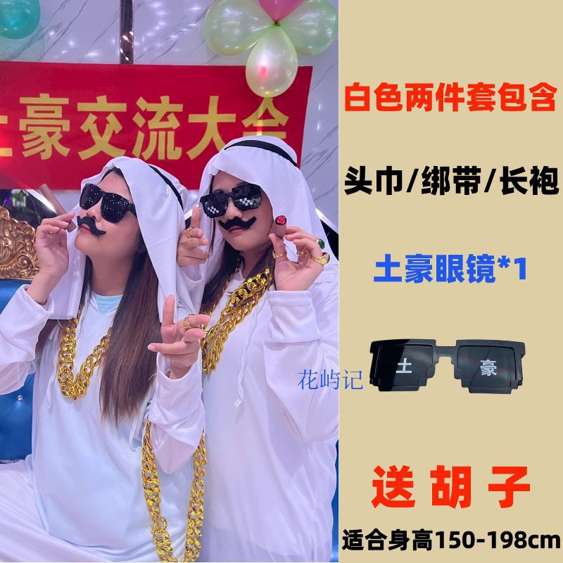 Color: $ [four-piece set] white model + rich glasses + five rings + thick gold necklace