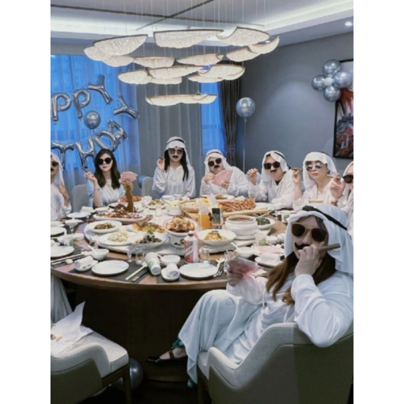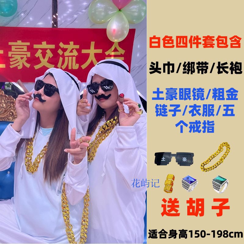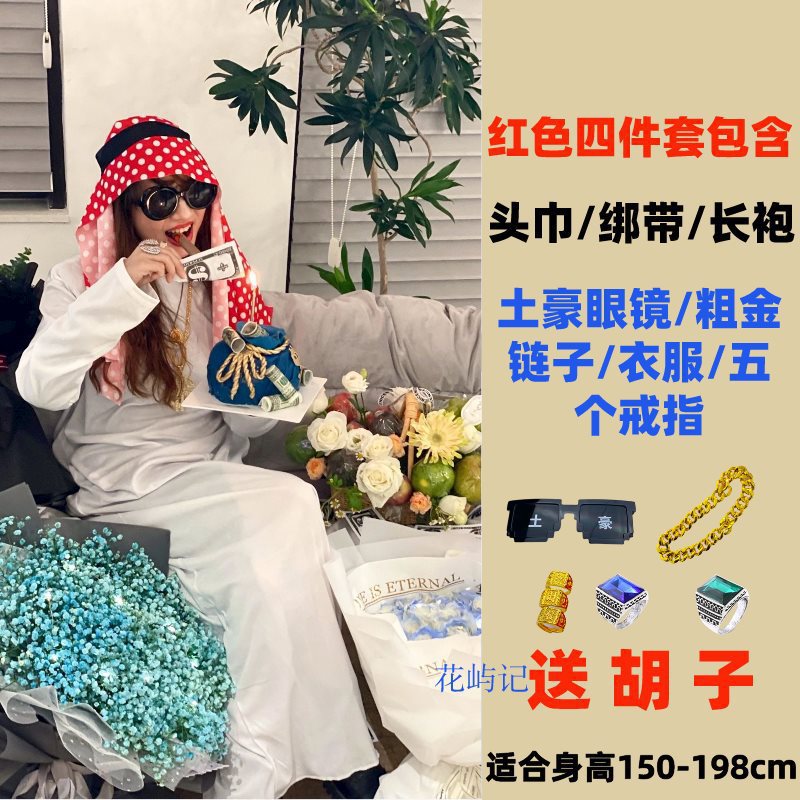 Color: $ [four-piece set] red model + rich glasses + five rings + thick gold necklace