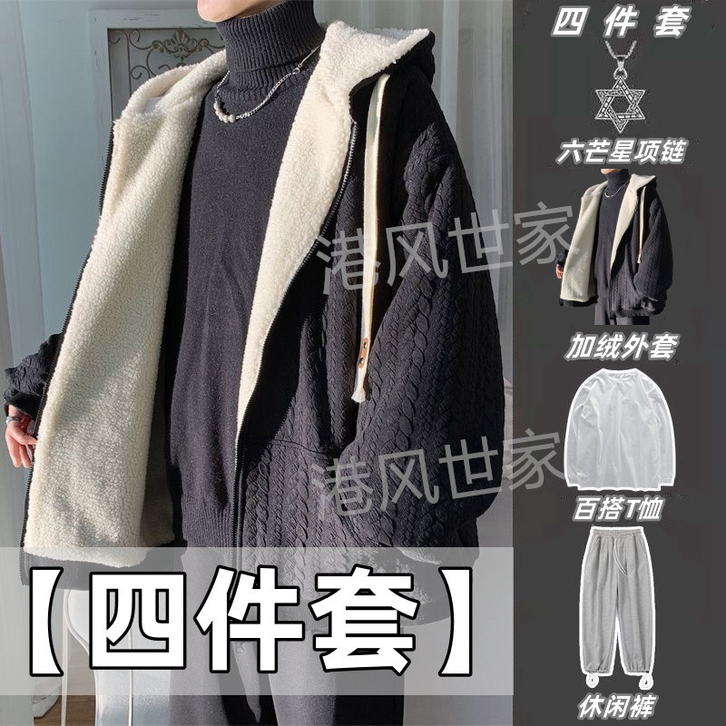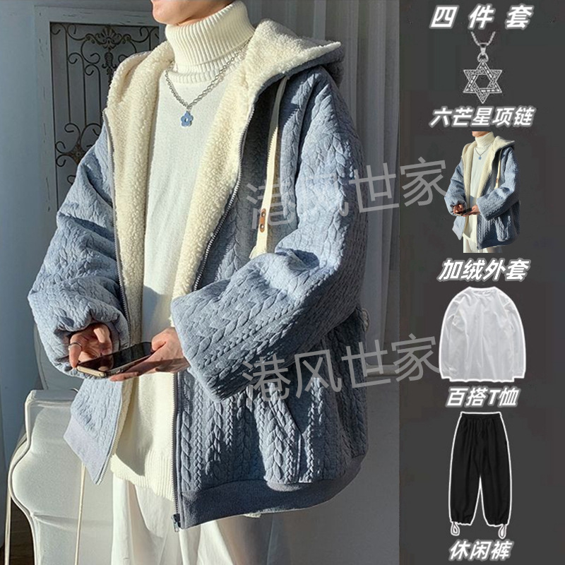 Color: Gray plus velvet + black velvet pants + long t + necklace [four-piece set]