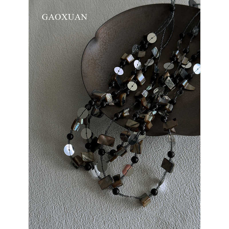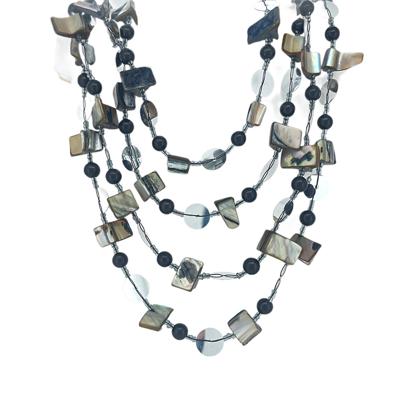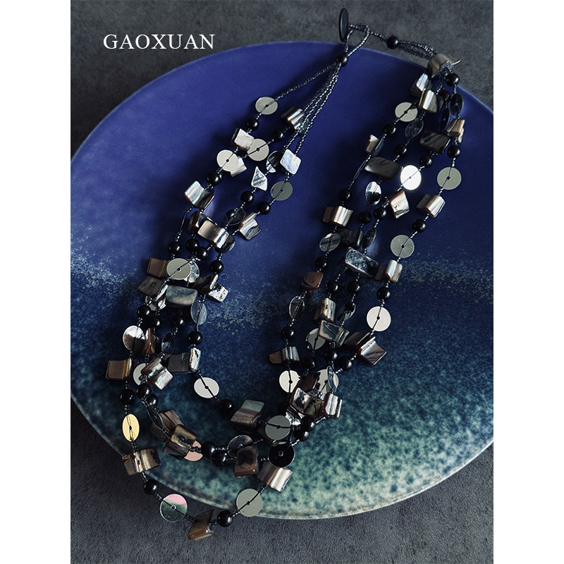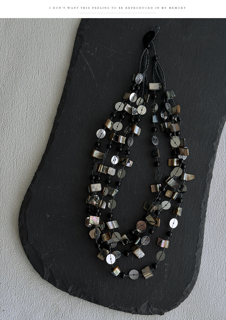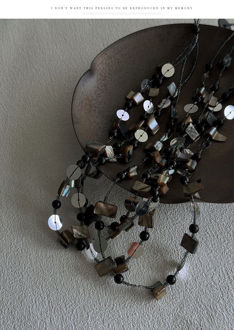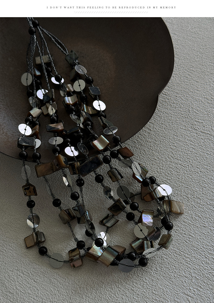 European and American Cross-Border Bohemian Multi-Layered Shell Ebony Beaded Necklace Holiday Ethnic Style Hand-Woven Clavicle Chain