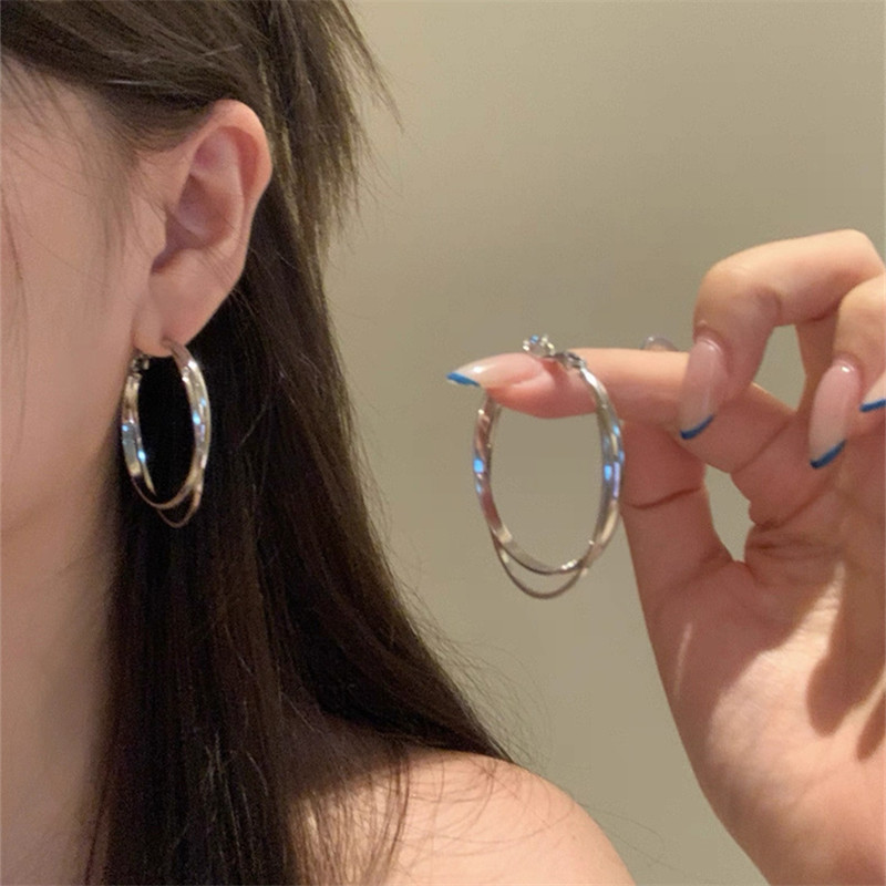 Silver Plain Hoop Earrings for Women 2025 New Style Simple Popular Round Face Earrings Accessible Luxury Elegant High-End Hoop Earrings
