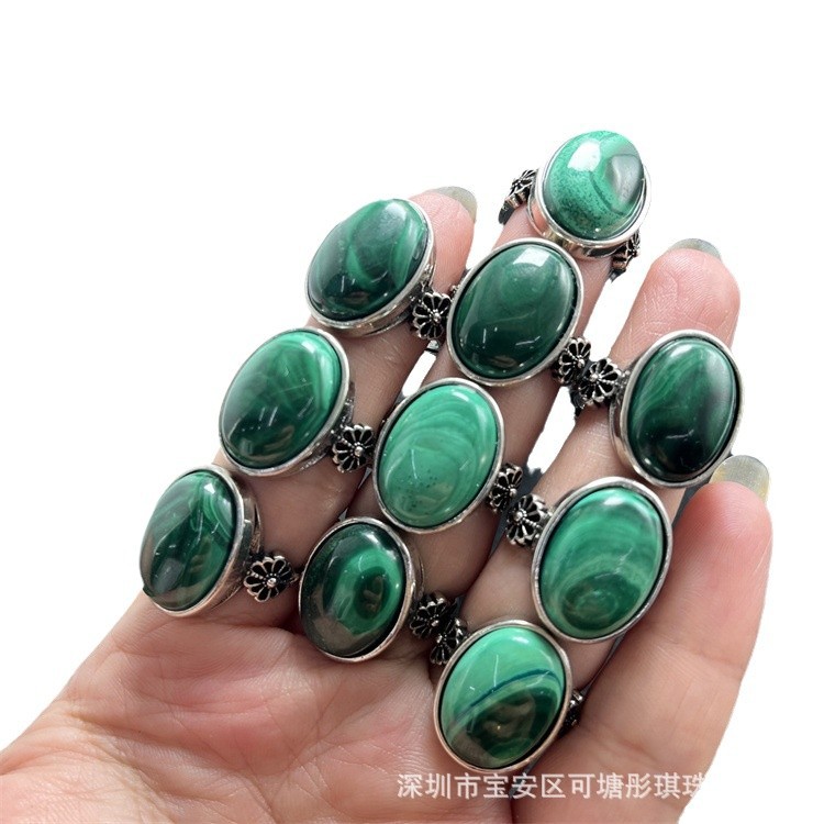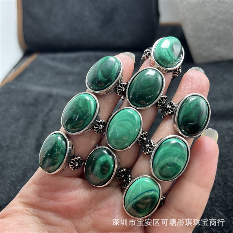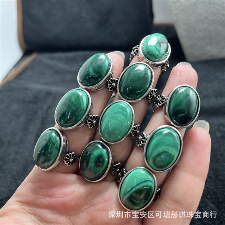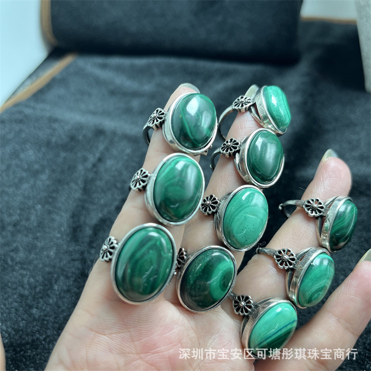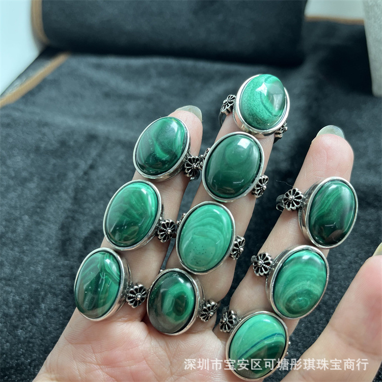 Natural malachite inlaid edging ring pattern clear style simple and generous run volume female ring wholesale