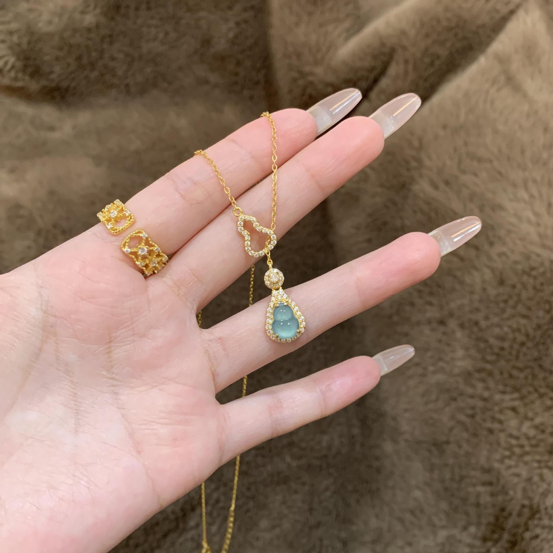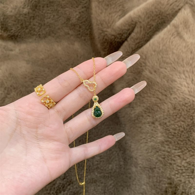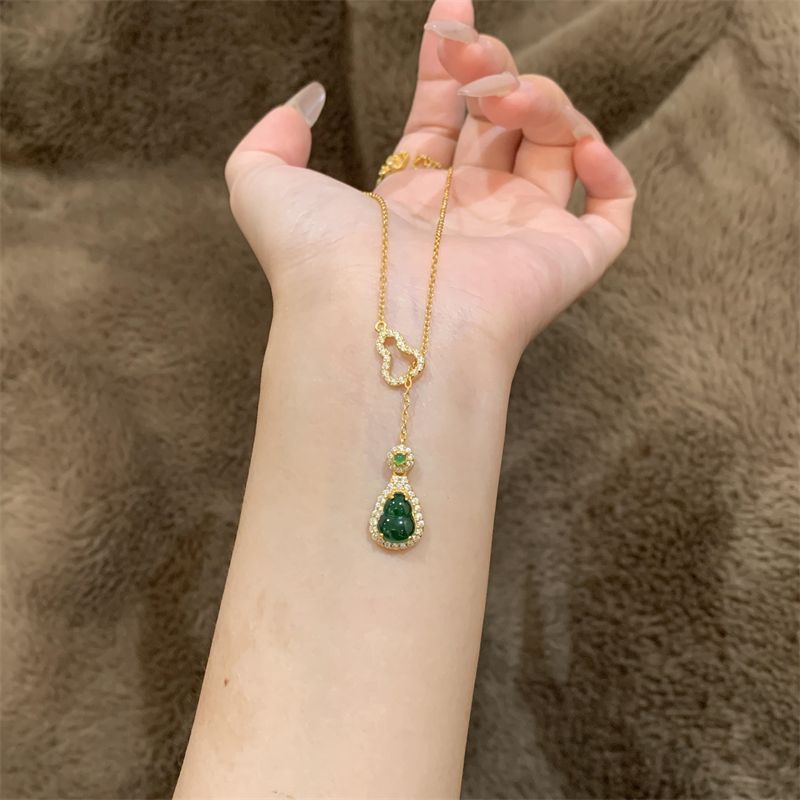 New Chinese Style Diamond Hollow Gourd Necklace Women's Vintage Light Luxury High-end Necklace Niche Fashionable All-match Clavicle Chain