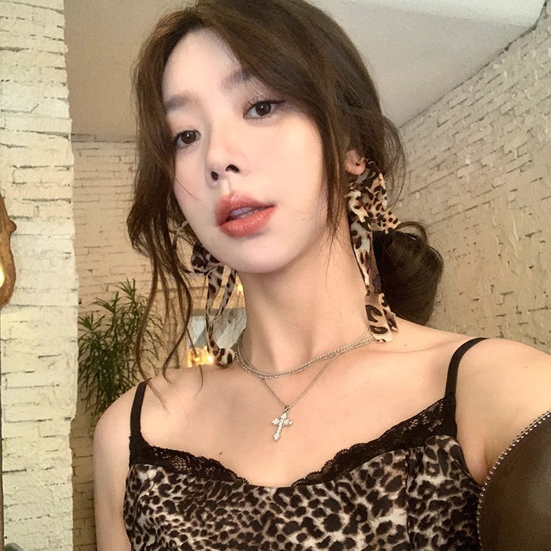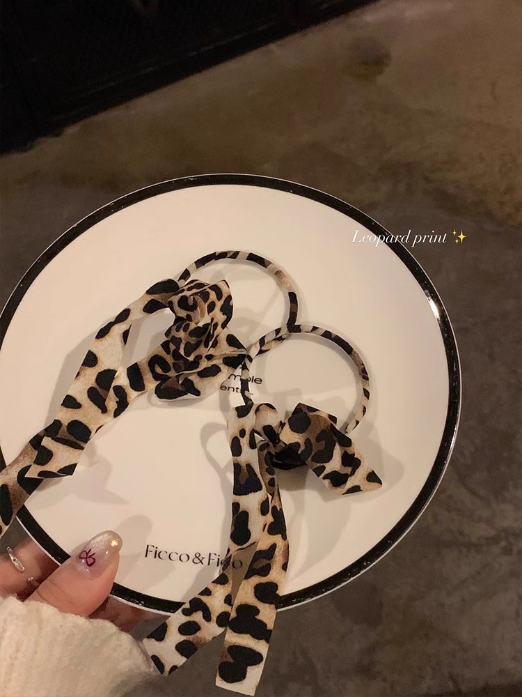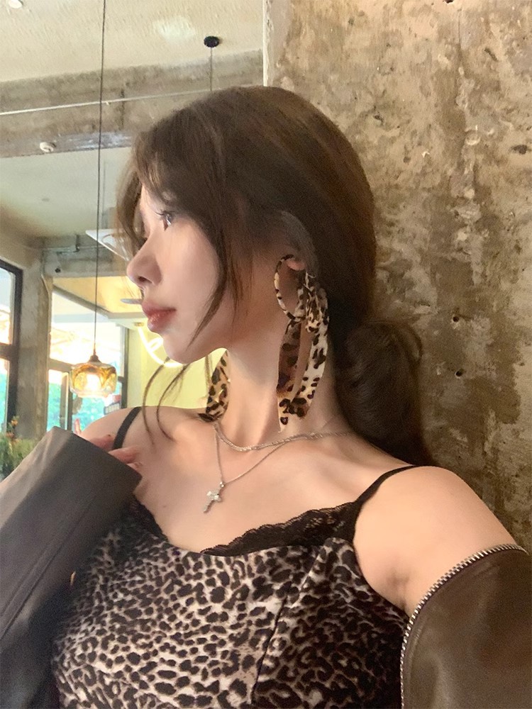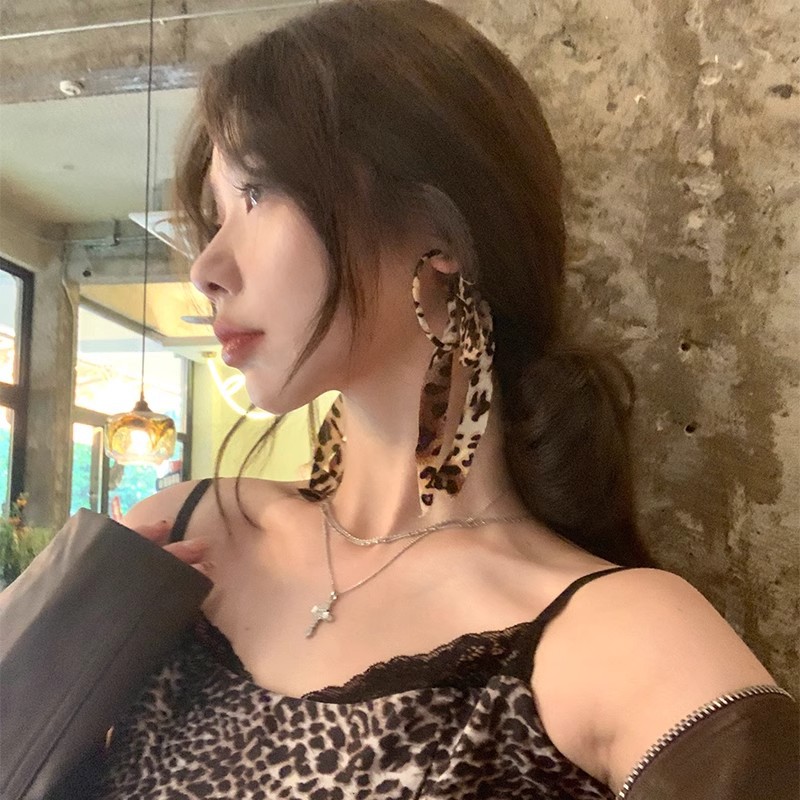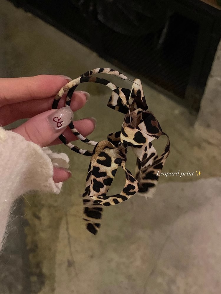 Autumn Leopard Ribbon Bow Tassel Large Circle Earrings Earrings Light Luxury High-end Sense Elegant plain Circle Earrings Earrings Stud