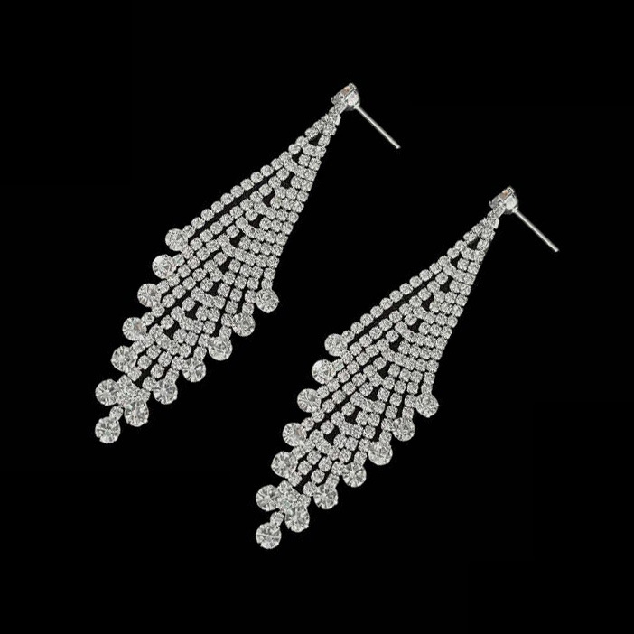 Cross-border Exaggerated Earrings Super Flash Full Diamond Women's Diamond Long Earrings Fashion High-end Ear Studs Wholesale Earrings Jewelry