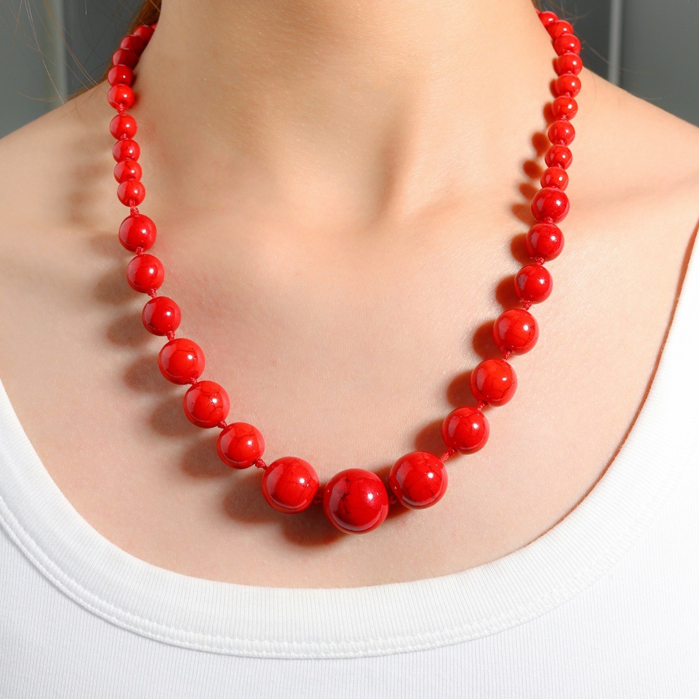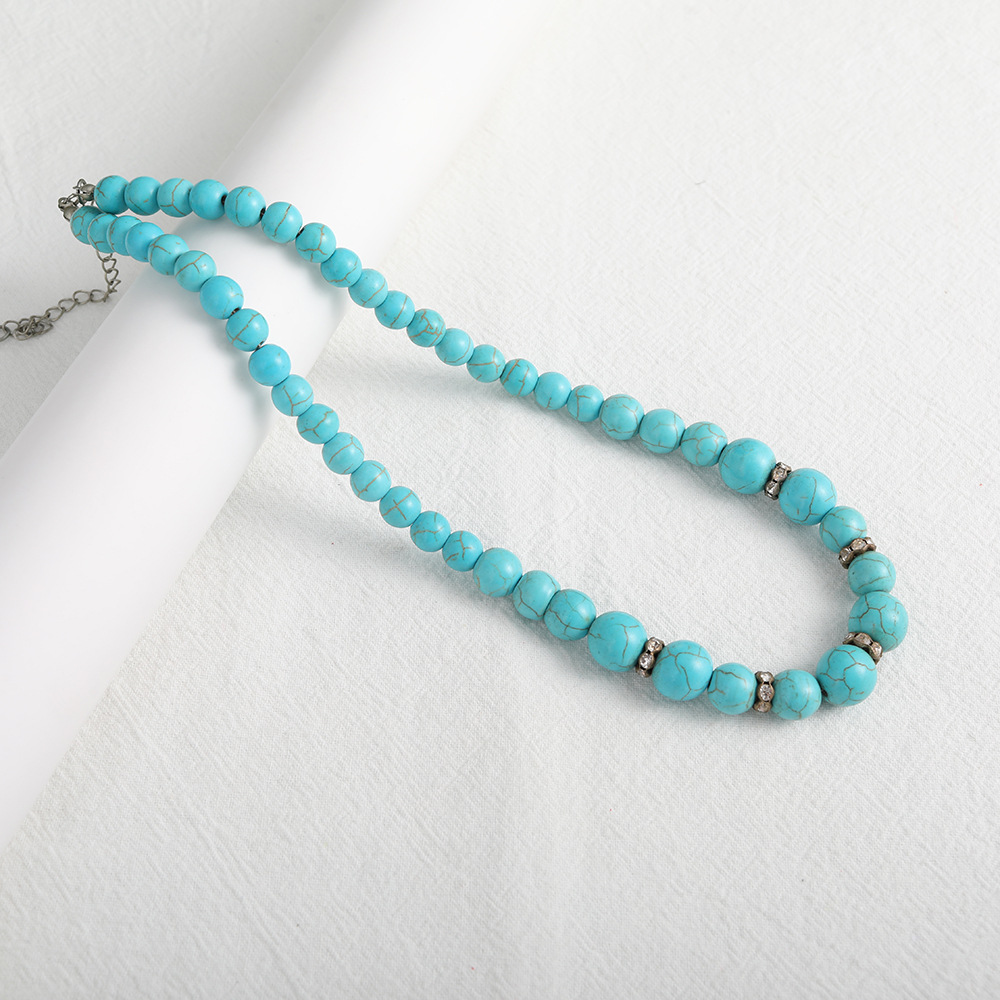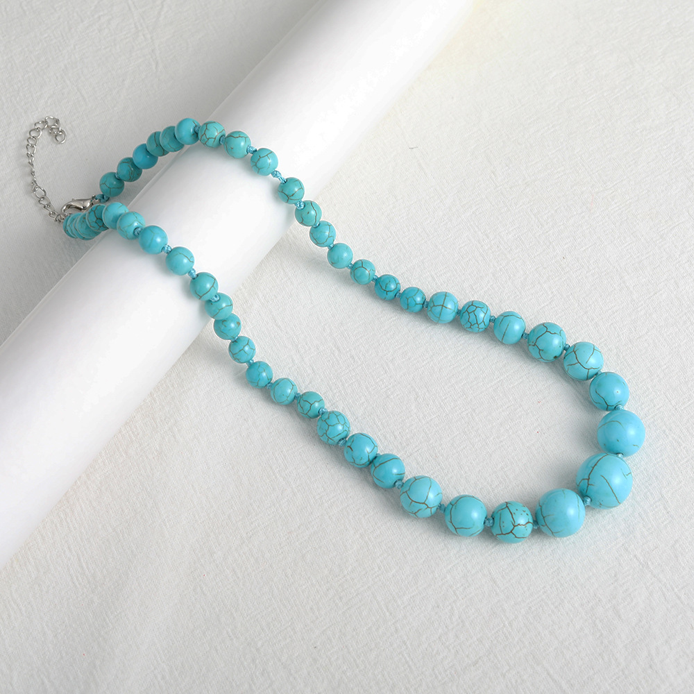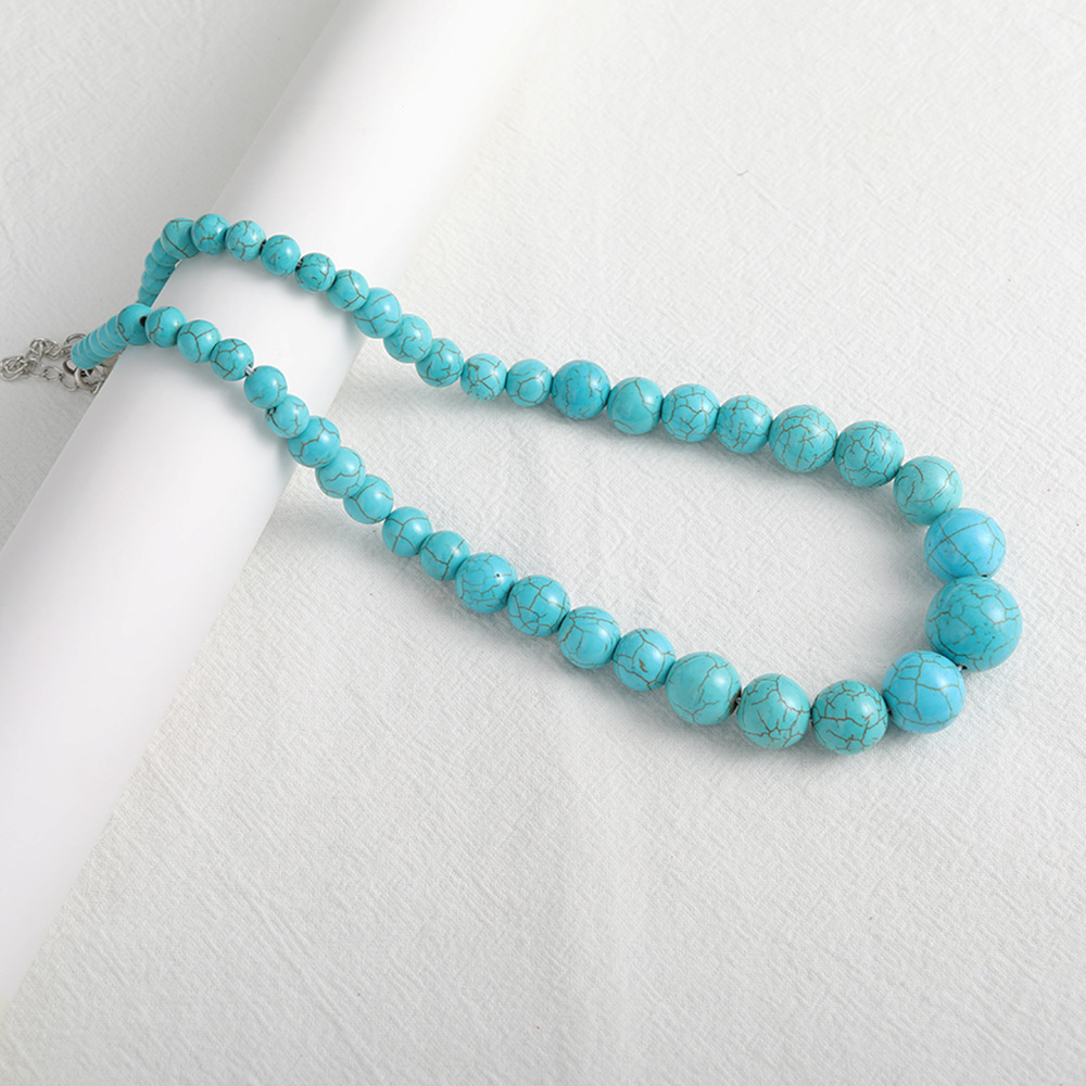 Cross-border Hot Turquoise Bead Necklace Women's Fashion Trend High-end Beaded Woolen Chain Jewelry Simple All-match