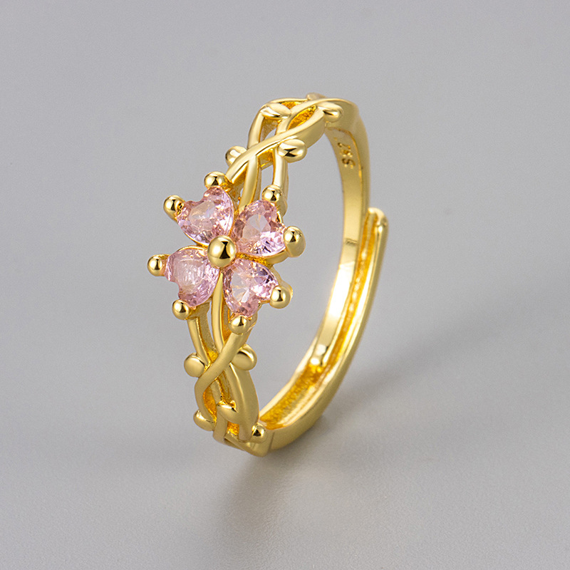 Color: Clover ring/gold/pink zirconium
