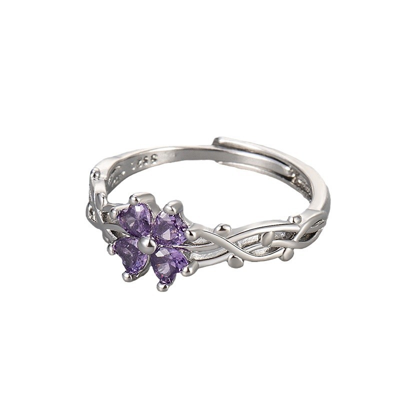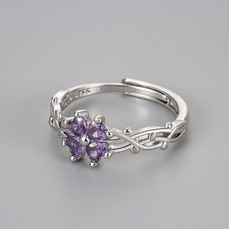 Color: Four-leaf clover ring/white gold/purple zirconium