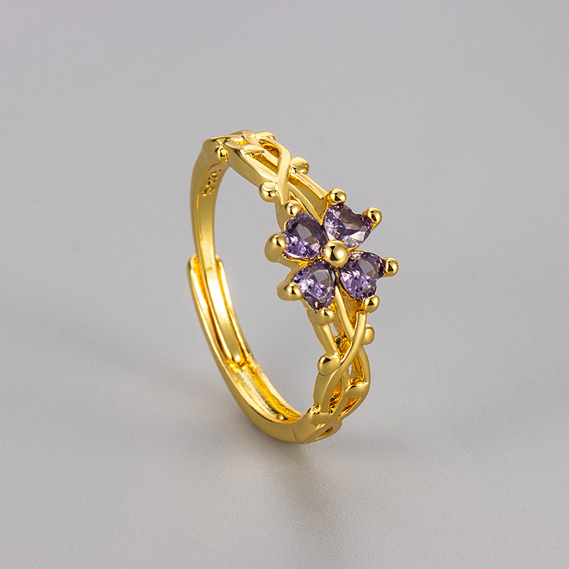 Color: four-leaf clover ring/gold/purple zirconium