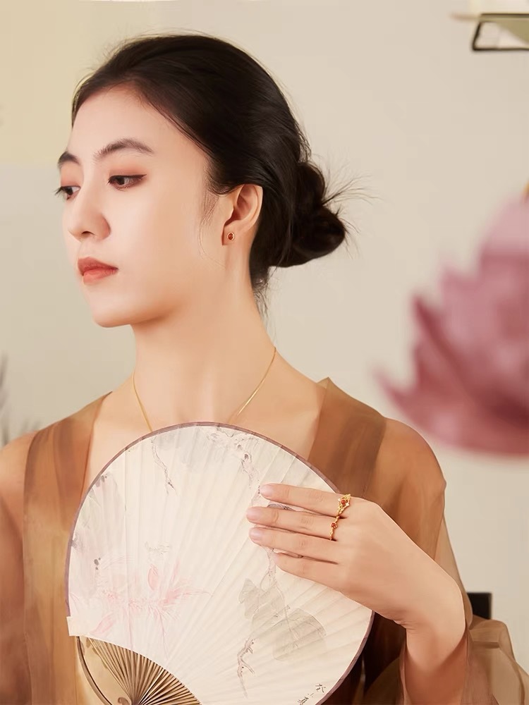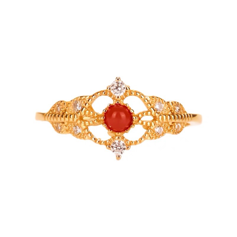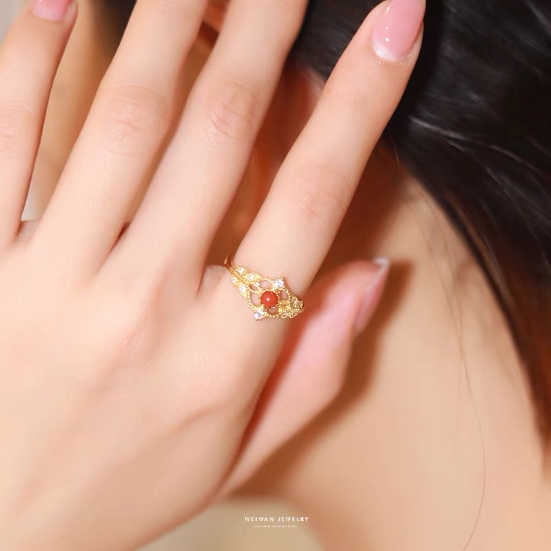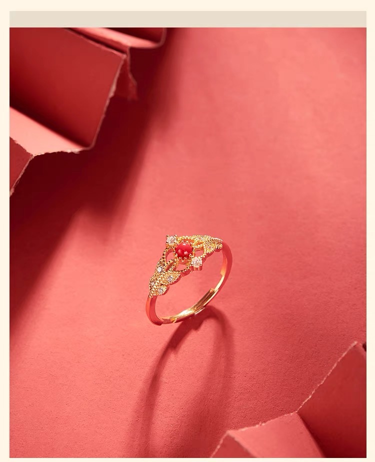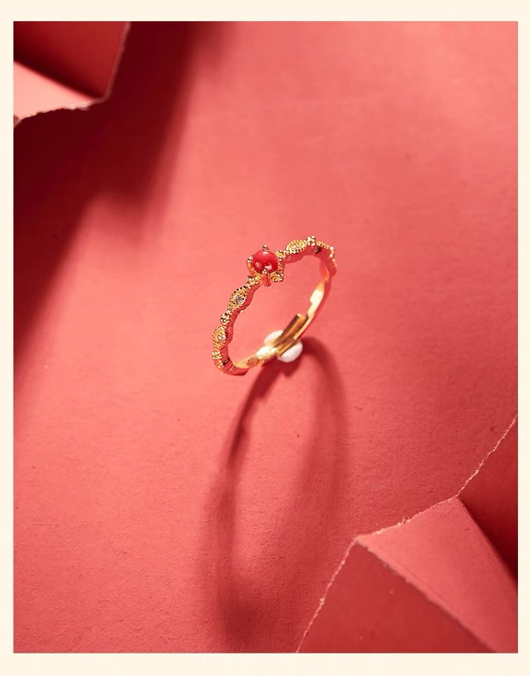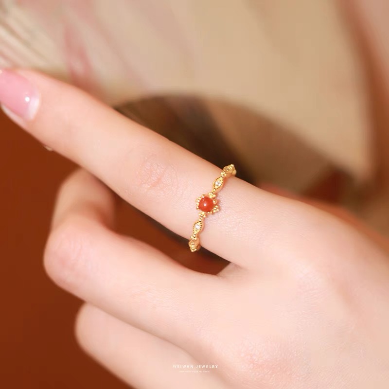 New Chinese Southern Red Imitation Agate Ring Women's Light Luxury Opening Zircon Trendy Jewelry Valentine's Day Gift for Girlfriend