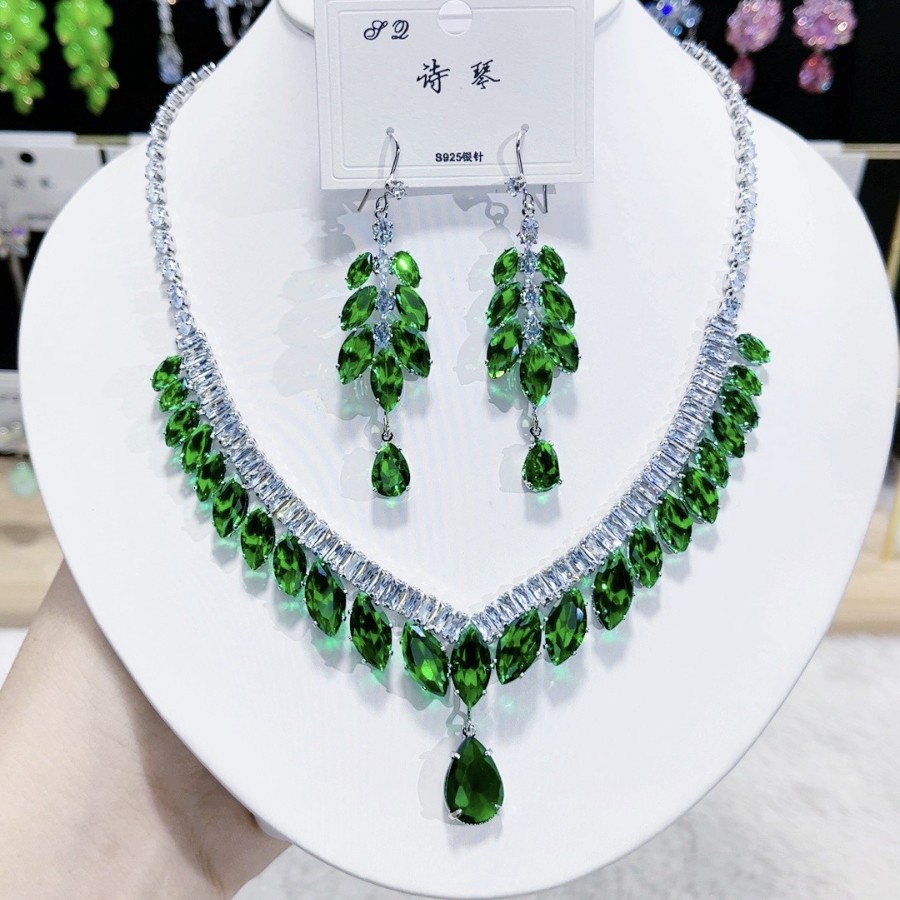 New Heavy Industry European and American Style Trendyy Zircon Luxury Necklace and Earrings Set Live Broadcast Popular Wheat Ear Elegant Necklace Decoration