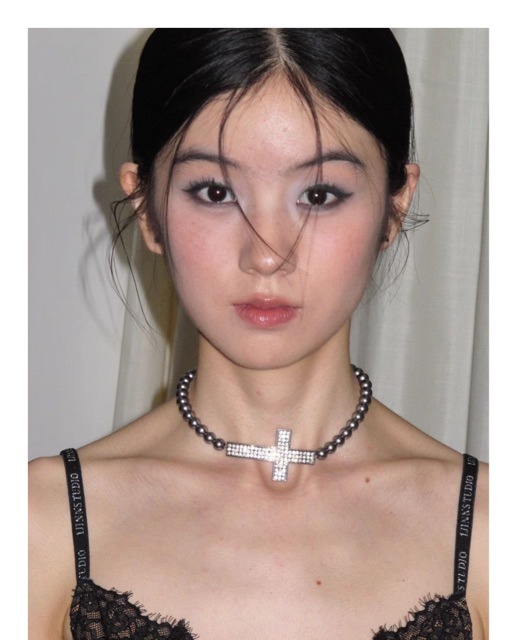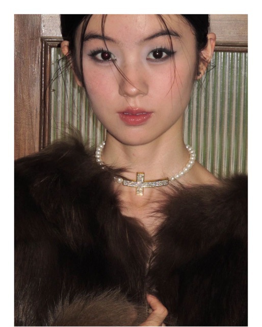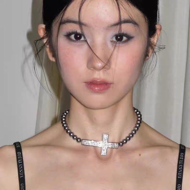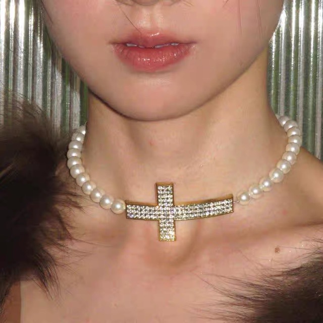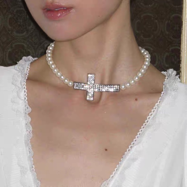 Antique Style Old Cross Pearl Stitching Clavicle Chain Simple All-match Necklace Diablo Punk Spice Girl Necklace
