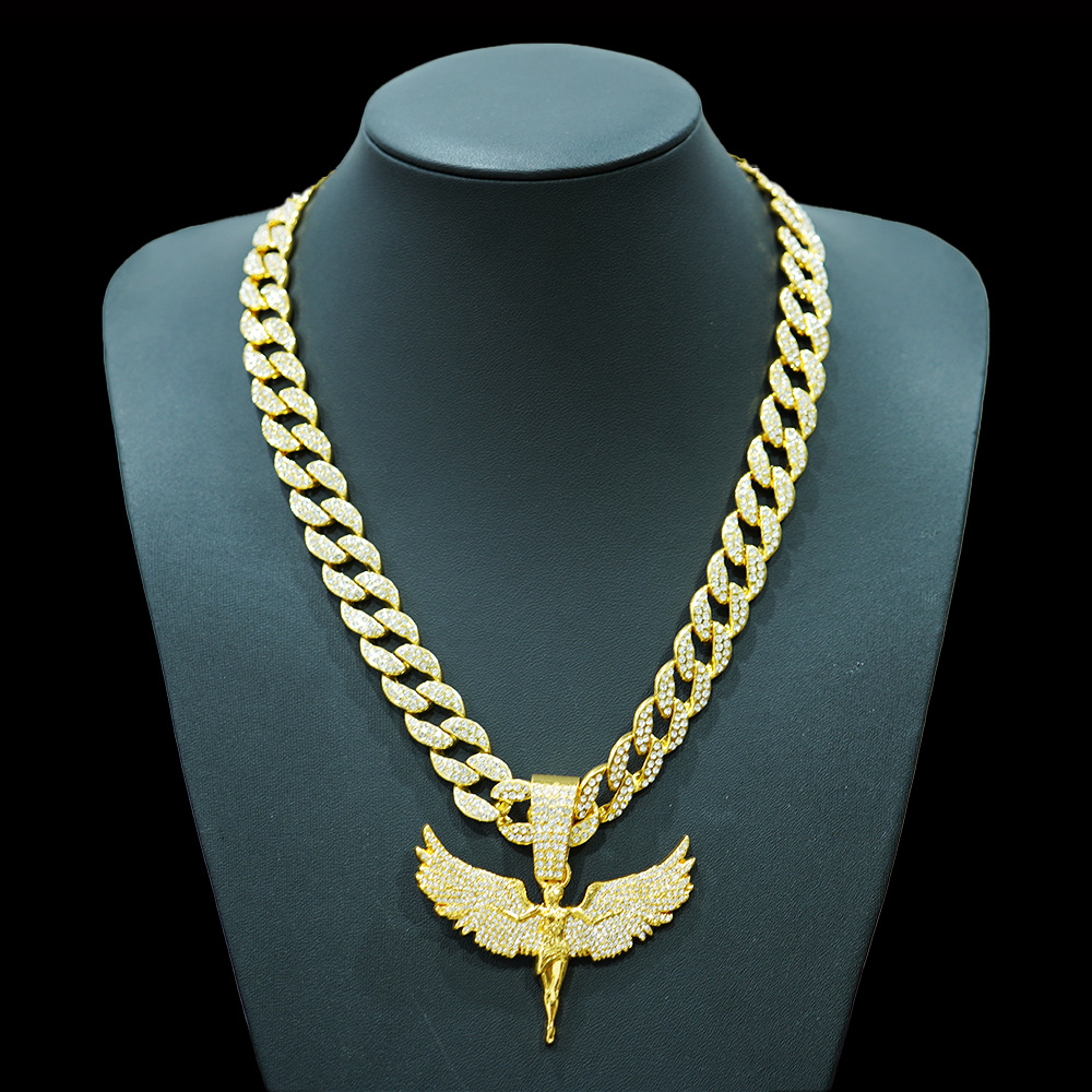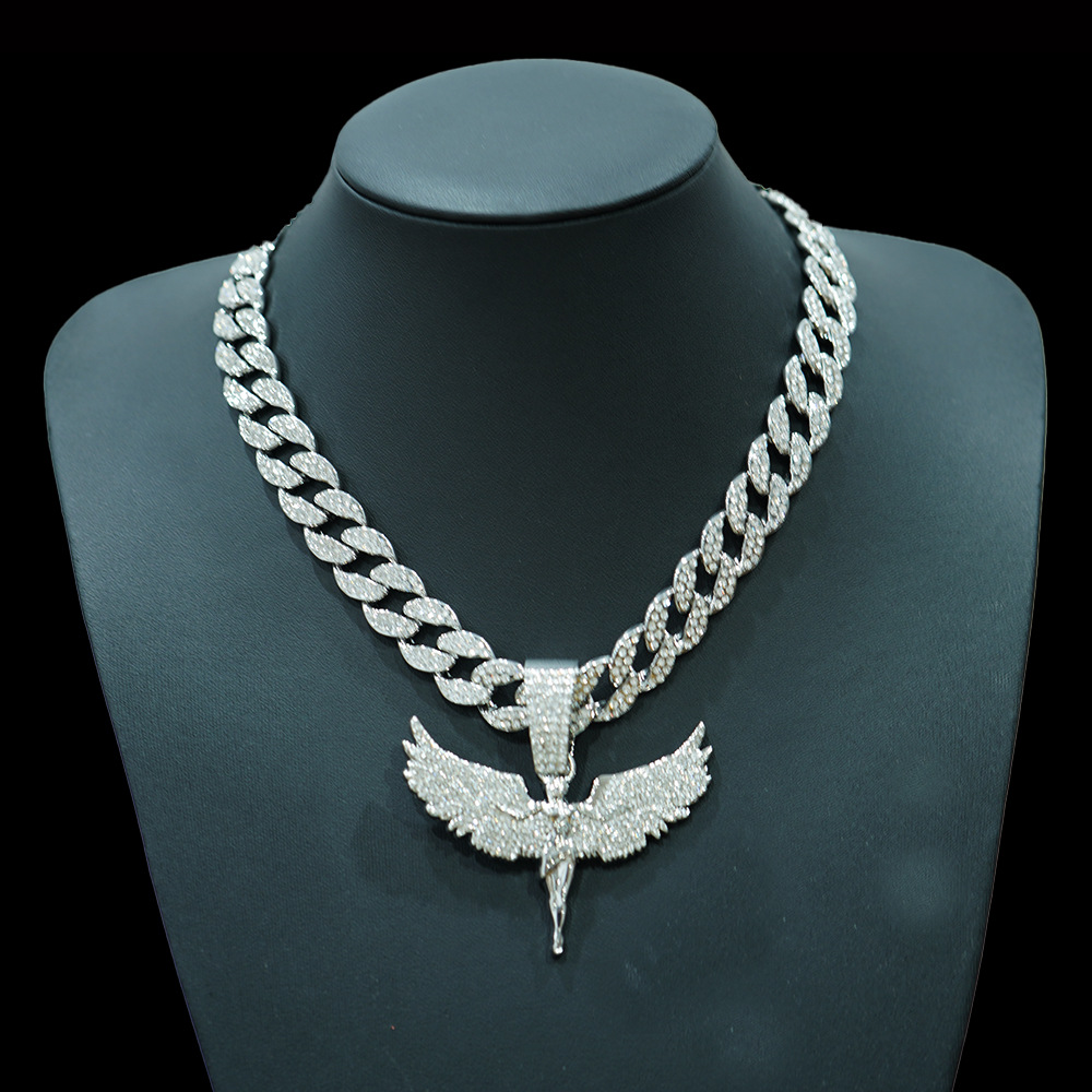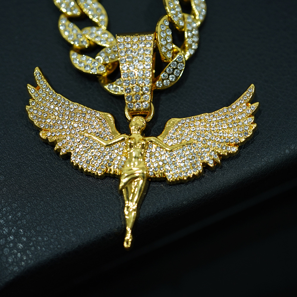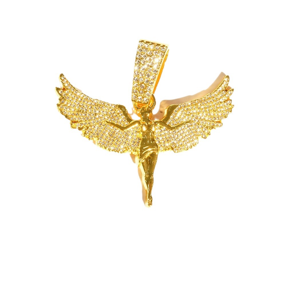 Europe and the United States cross-border goddess angel wings alloy pendant personality full diamond men and women rap with necklace manufacturers wholesale